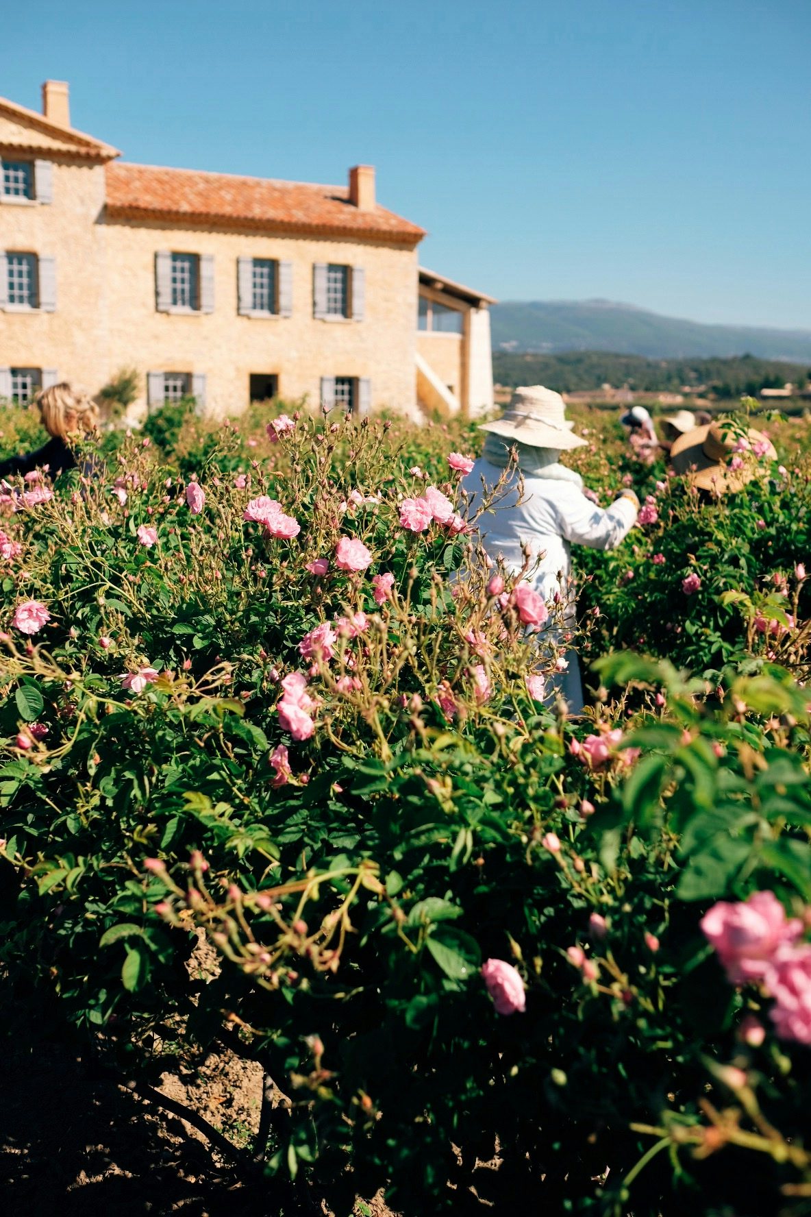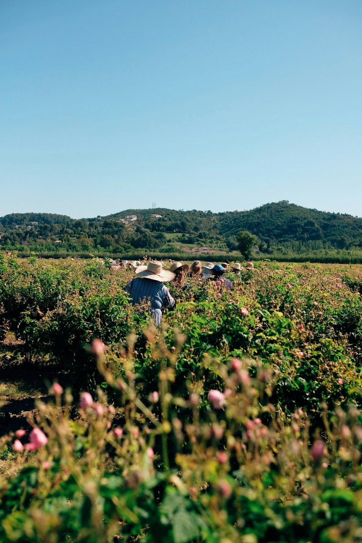 Dennoch herrscht während der Erntezeit ein reges Treiben auf den Feldern, ein wenig verschwindet das Laissez-Faire aus den Gesichtern der Französ*innen. Nur drei bis vier Wochen haben die Pflücker*innen Zeit, die Rosen vorsichtig von den Sträuchern zu ernten, denn die Blüte kann nur in geöffnetem Zustand gepflückt werden. Das alles geschieht auf dem Grundstück der Familie Mul in Pégomas auf 20 Hektar Feldern. Seit knapp hundert Jahren bezieht Chanel seine Rohstoffe für das Chanel No°5 aus Grasse, mit der dort ansässigen Familie hegen sie eine enge Verbindung, seit 1987 wird hier nur exklusiv für das französische Traditionshaus (und keine andere Luxusmarke!) angebaut und das von fünf Generationen geballtem Parfum- und Pflanzenwissen.