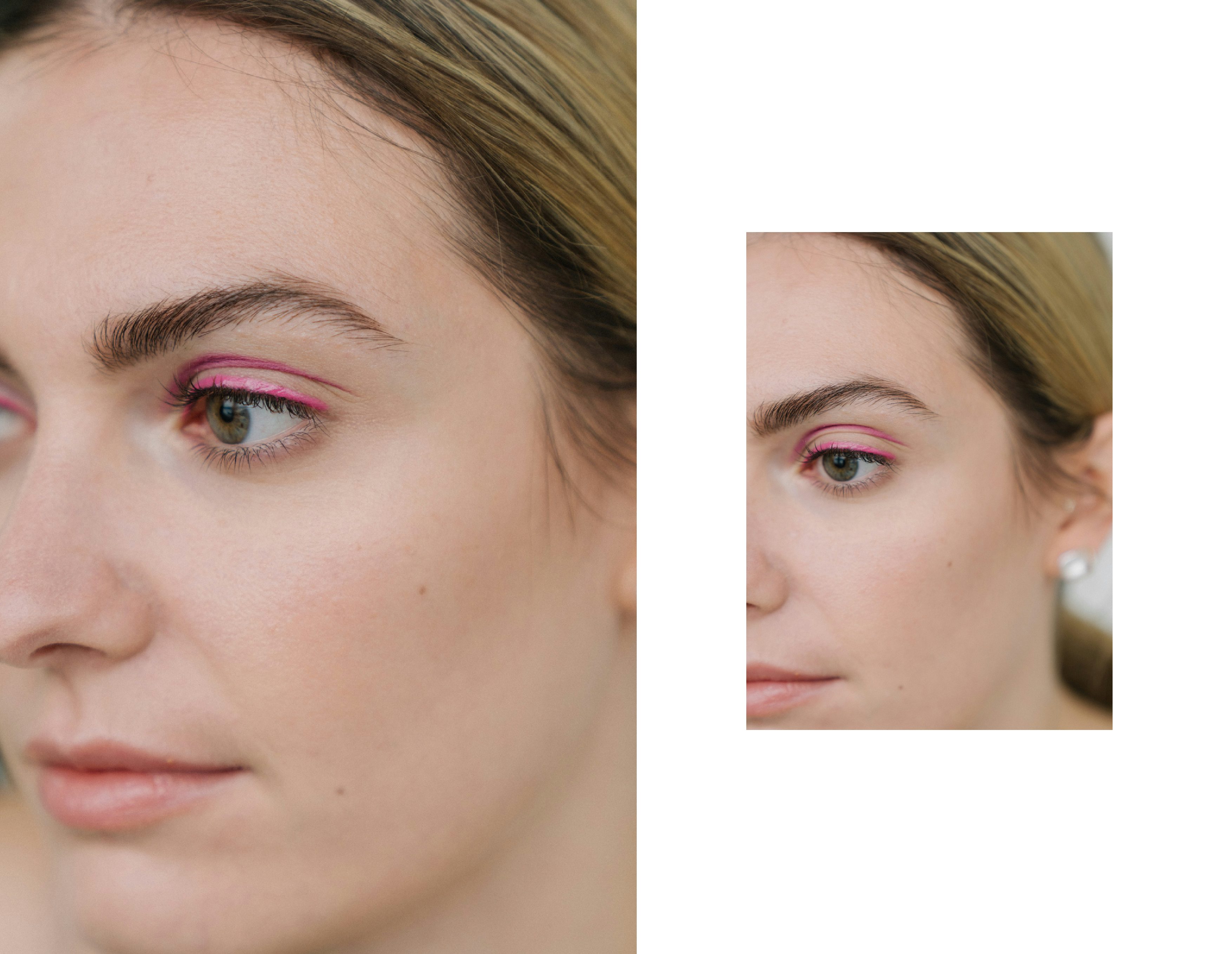 Sich knallpink auf die Augen aufzutragen? Da braucht man Mut. Das Gute an dem Look? Ihr könnt ihn jetzt schon mal heimlich, still und leise zu Hause ausprobieren, jeder hat schließlich einen rosa Lipliner im Repertoire. Sonst tut es auch ein knalliger Lippenstift, den ihr mit einem feinen Pinsel auftragt. Wenn euch der Look gefällt, solltet ihr dann aber in einen Eyeliner in der investieren, der unterscheidet sich in der Haltbarkeit dann doch immens und färbt nicht aufs obere Augenlid ab. Tipp: Um den oberen Eyeliner zu ziehen, schaut geradeaus in den Spiegel, so findet ihr die perfekte Höhe aka eure Augenfalte problemlos.