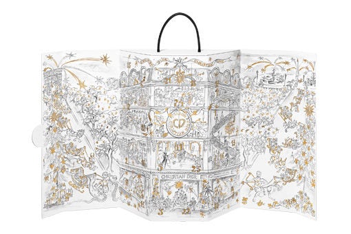 Blickfang. Anders kann man den Adventskalender aus dem Hause Dior nicht beschreiben. „Mit dieser geheimnisvollen Box in den Händen ist jeder Mensch in der Lage, die Türen zu einem zauberhaften Universum zu öffnen, das nur wenigen Connaisseurs bekannt ist: die außergewöhnliche Welt der Haute Couture.“ So beschreibt Künstler Vincent Darré, der für das Design verantwortlich ist, den Kalender. Ich finde, das klingt ziemlich traumhaft. Leider finden wir darin jedoch keine wirkliche Haute Couture (dann wäre der Kalender wohl unbezahlbar), dafür aber 24 Beautyprodukte aus dem Modehaus.