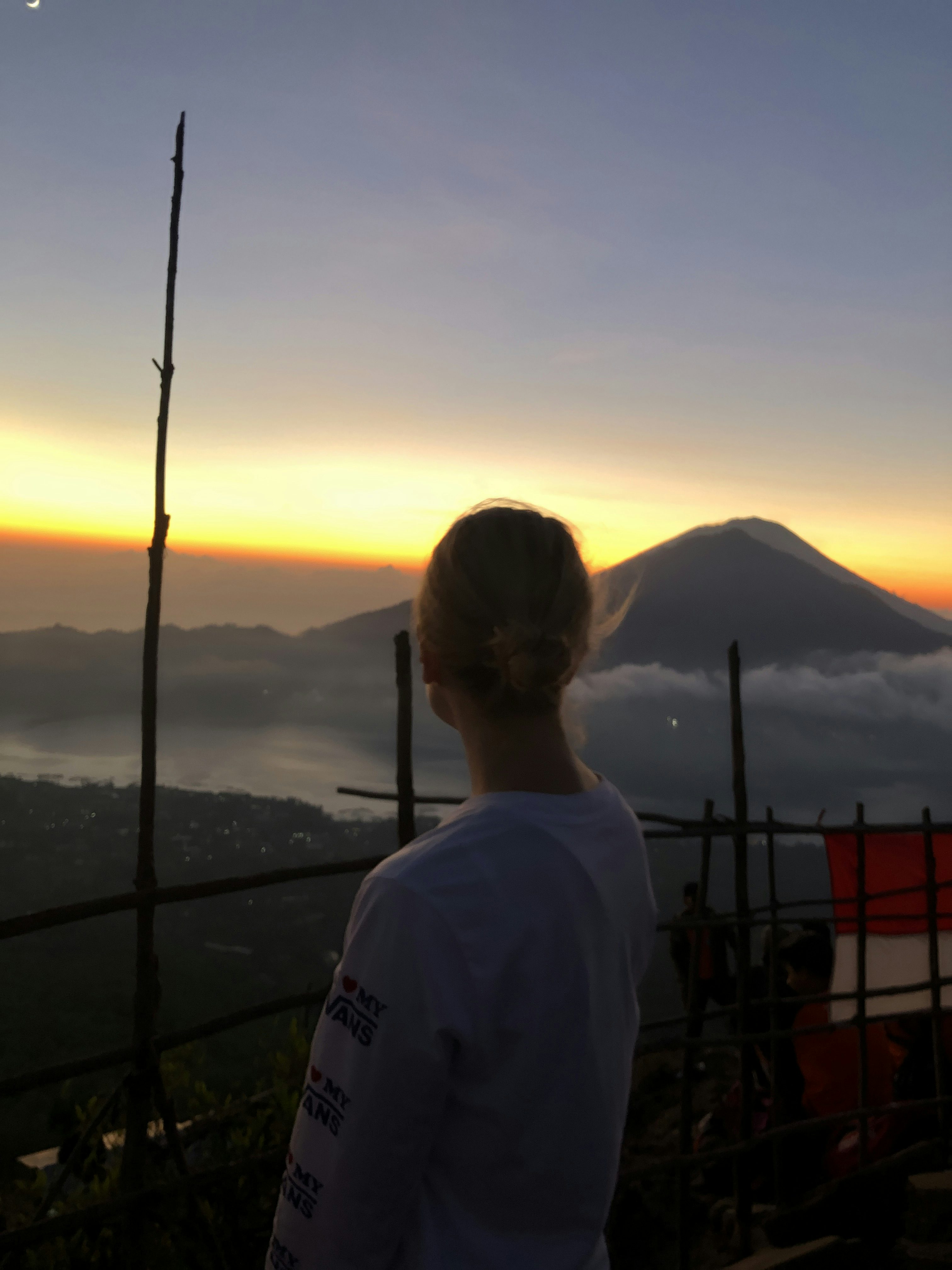 Am Abreisetag machte ich mich mit einigen aus unserer Yogagruppe in Herrgottsfrühe noch mal auf zum Vulkan Mount Batur, um den Sonnenaufgang anzuschauen. Für uns war das irgendwie der perfekte Abschluss, quasi die letzte zu besteigende Hürde nach diesen drei intensiven Wochen. Um zwei Uhr nachts ging es los und was soll ich sagen? Wir waren wirklich in allerbester Gesellschaft. Eine einzige Taschenlampenparade war das, die sich da mitten in der Nacht auf den erstaunlich beschwerlichen Aufstieg auf den 1700 Meter hohen Vulkan machte, um pünktlich um halb sechs Uhr morgens den Sonnenaufgang zu bestaunen. Der war unbezahlbar und man konnte sich die Menschenmassen ganz gut wegdenken. Ich bin froh, dass ich es gemacht habe, aber ich mache es nicht nochmal, das steht fest. Meine Knie waren nach drei Wochen Daueryoga und dem Auf- und Abstieg nämlich ganz schön im Eimer. Mit geschrotteten Gelenken begab ich mich also auf den zweiten Teil meines Bali-Abenteuers: das Reisen!
