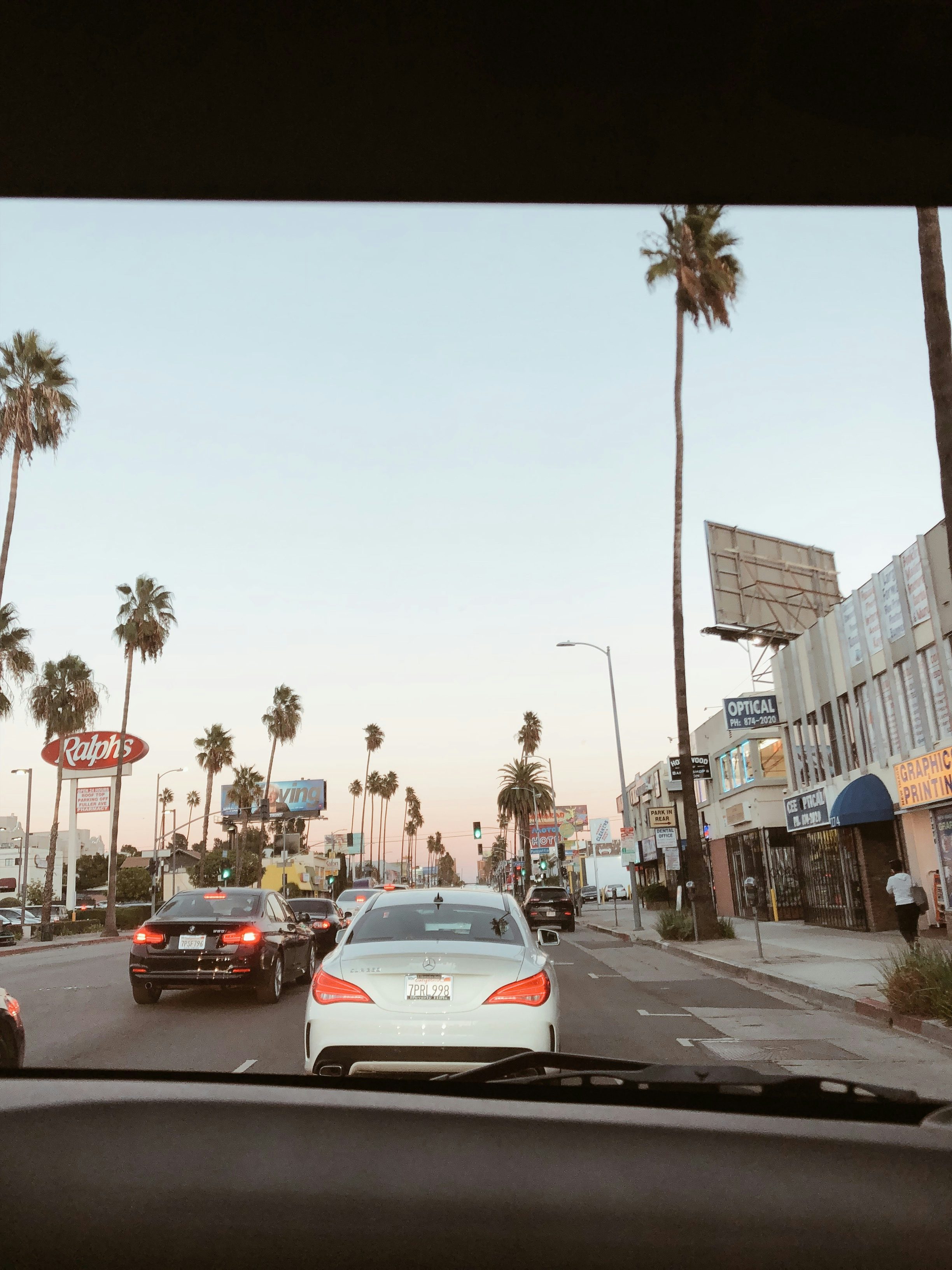 Ansonsten hat L.A. es an sich, ein bisschen falsch rüberzukommen. Woran das liegt? Man kennt wirklich so viele Szenerien aus Filmen, dass einfach alles nur Kulisse zu sein scheint. Der Sonnenuntergang ist very instagrammable, die Leute tragen perfekt sitzende Vintagejeans und T-Shirts oder den Allover-Athleisure-Look, jede*r ist super nett und hilfsbereit und an allen Ecken lauert die Chance, endlich mal einen Hollywoodstar im echten Leben zu sehen – was mir leider (noch) nicht passiert ist. Kaum macht man den Soundtrack von „La La Land“ an, schon sieht man sich selbst tanzend durch die Straßen schlendern. Alles dreht sich einen Deut langsamer, jeder ist entspannt und alle scheinen Geld zu haben: für dicke Autos, die neuesten Modetrends, gesundes Essen und die neueste Technik. Der Tesla ist in L.A. das Pendant zum Golf auf den deutschen Straßen. Gefahren wird der für jeden Meter, selbst Geldautomaten können vom Auto aus bedient werden. Eine verrückte, faule Welt.