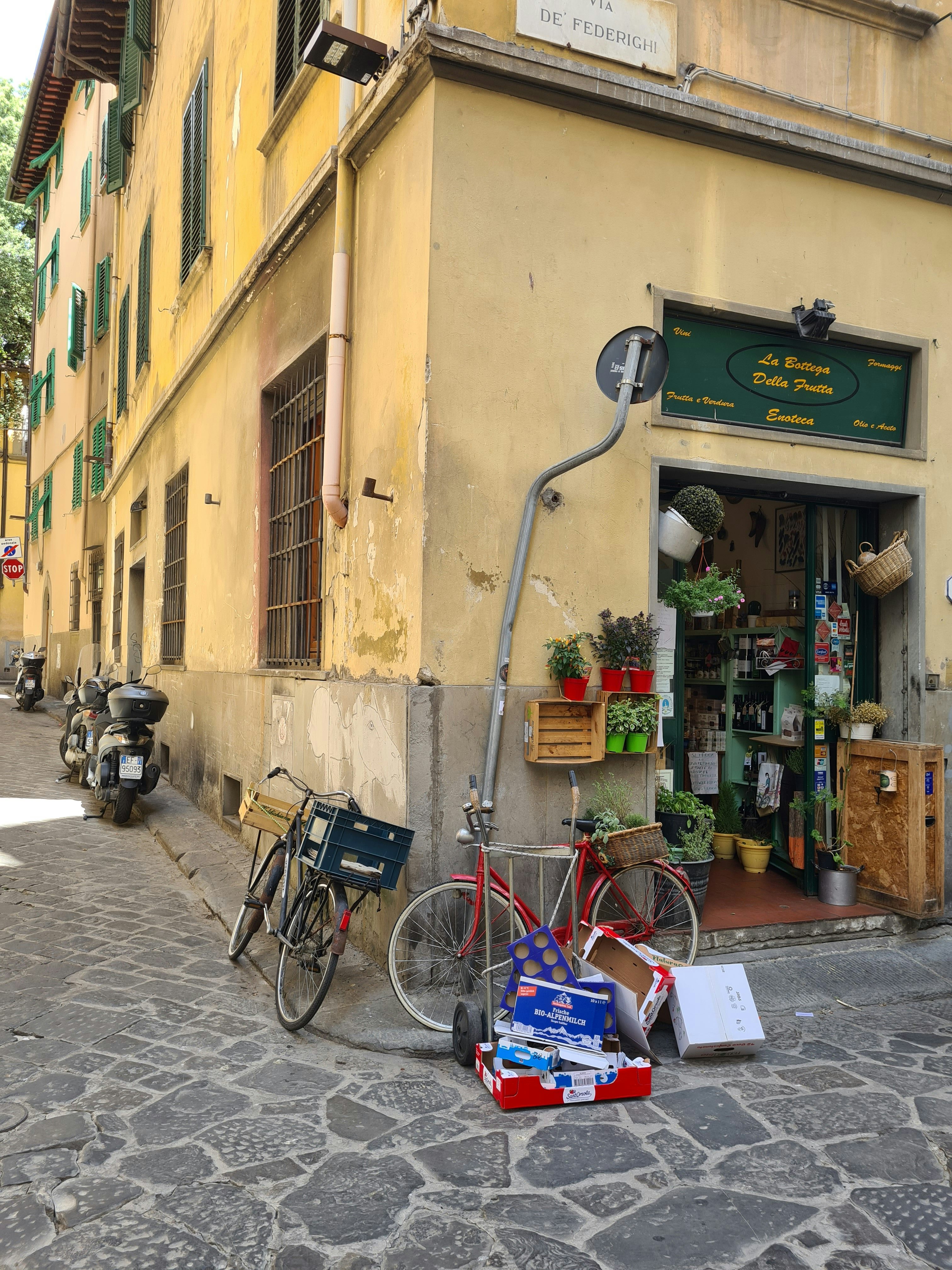 Wenn ich in den Urlaub fahre, versuche ich meistens, Stücke zu finden, die typisch für den jeweiligen Ort sind. Viele Florentiner Boutiquen bieten handgemachte Produkte an, die aus der Region kommen: In der Florence Factory findet ihr Kleidung, Schmuck, Accessoires und Einrichtung, die allesamt in und um Florenz hergestellt wurden. Bei Bjork gibt es Düfte, Zeitschriften und modische Unisex-Basics. Eugenia Back Jewellery ist sowohl Laden als auch Atelier – die Designerin stellt hier wunderschönen Schmuck her.