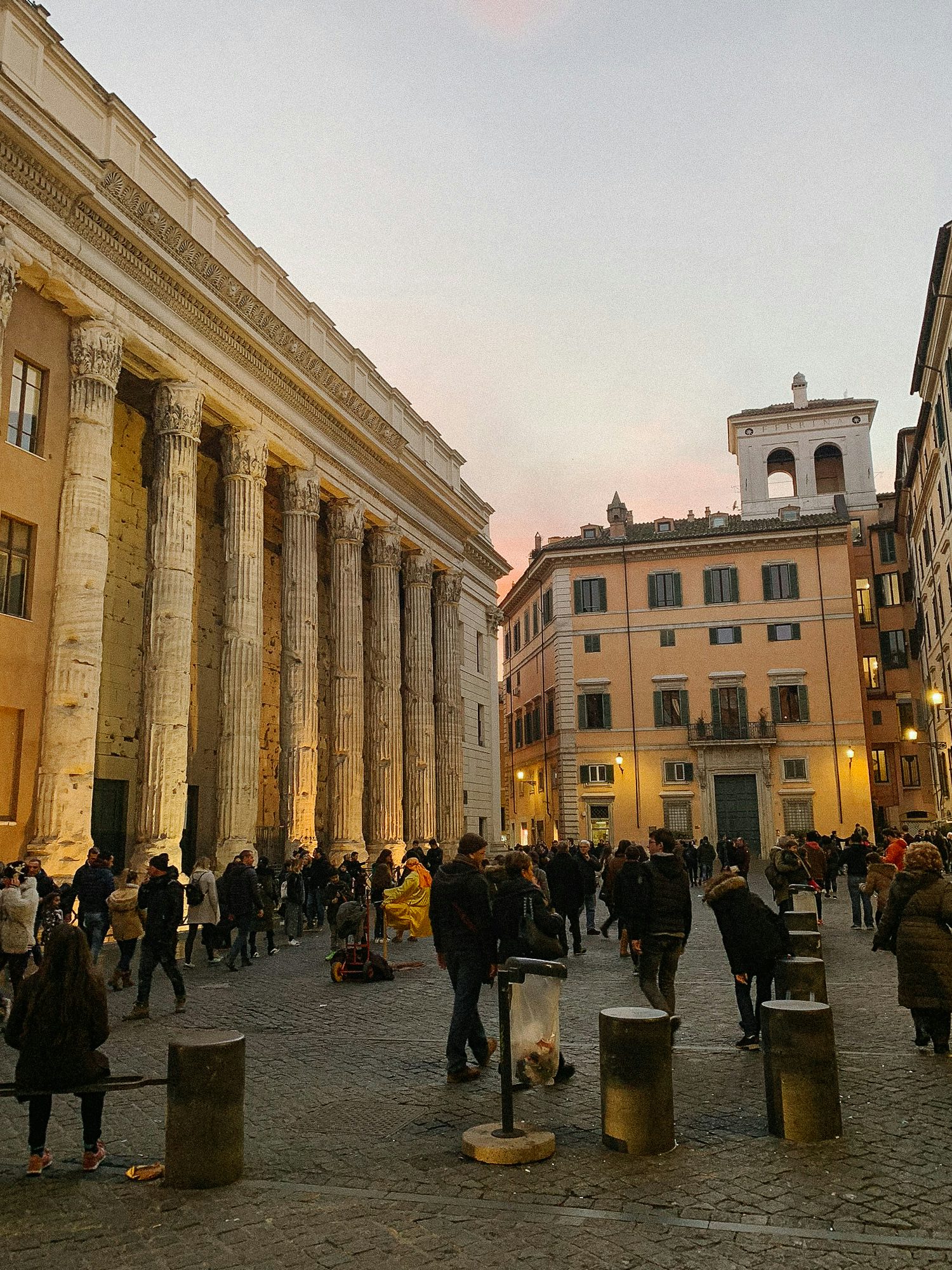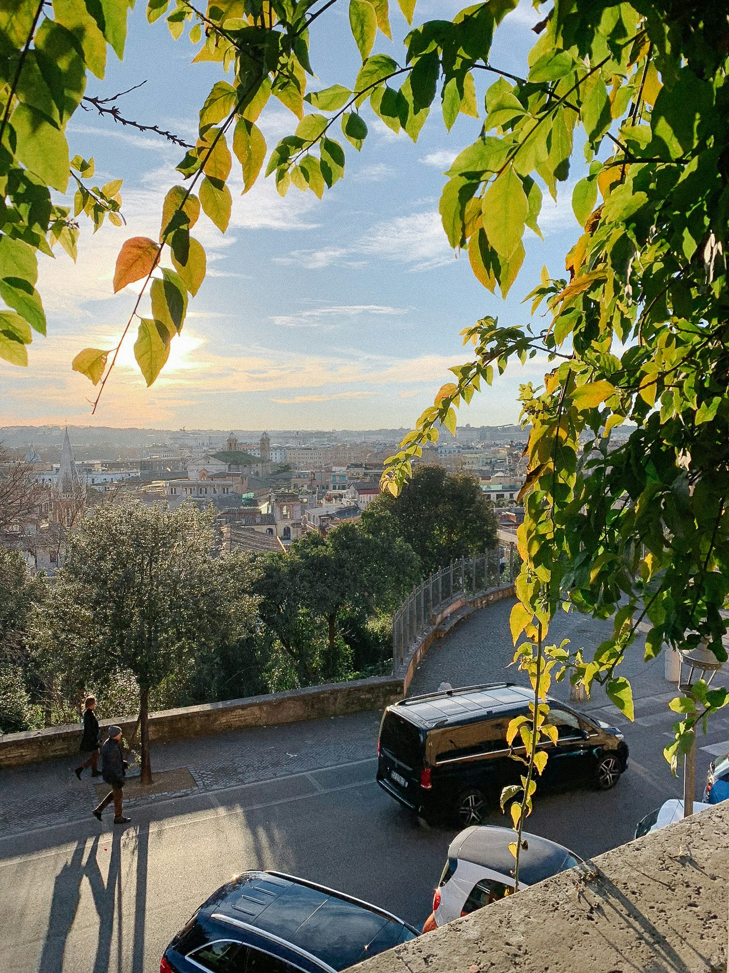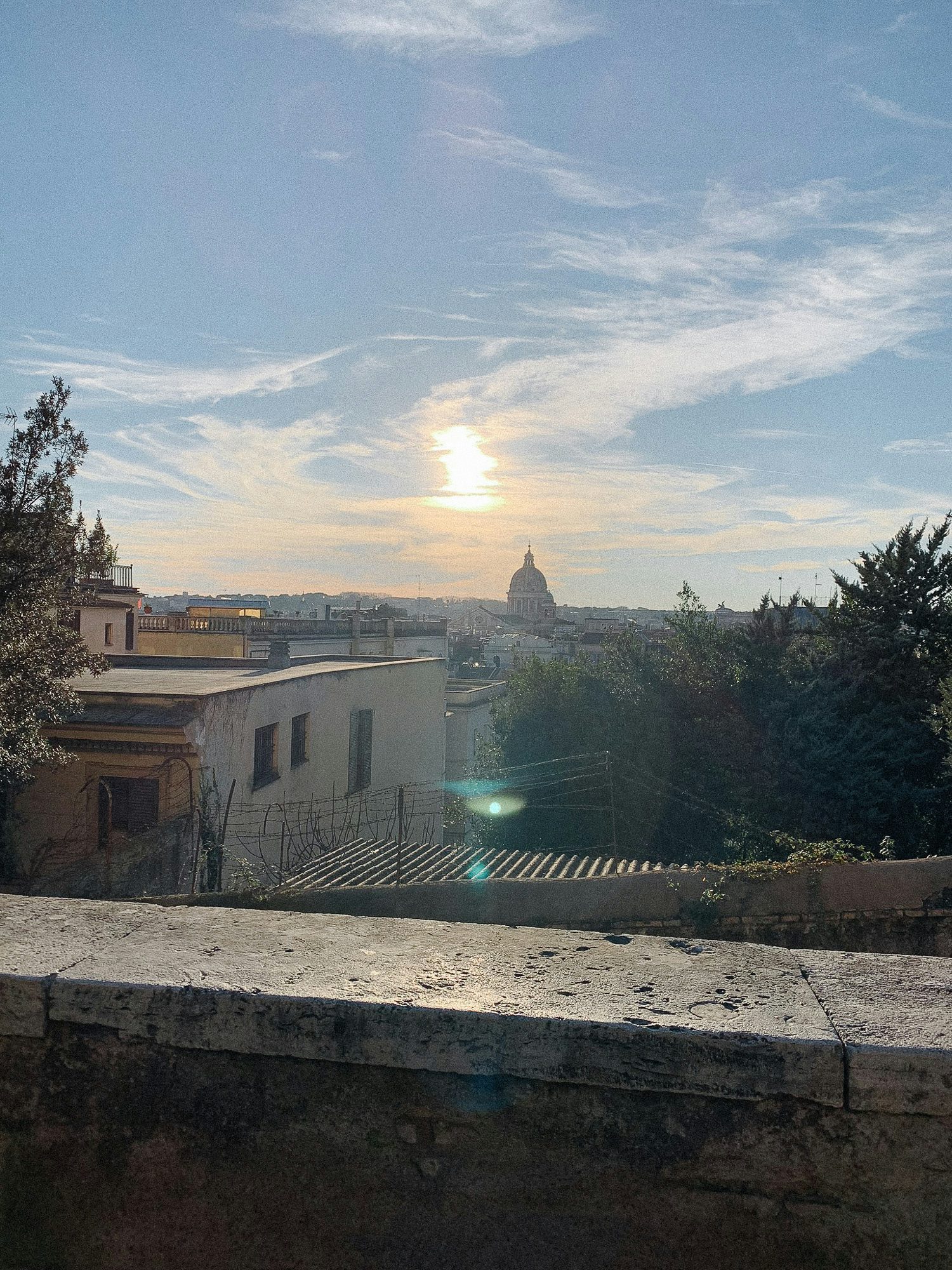 Wäre Rom ein Parfum, wäre es eine Komposition aus Pfeifentabak, Espresso und gebratenem Guanciale (Speck). Je näher wir dem Stadtkern kamen, desto intensiver stieg uns dieser spezielle Geruch in die Nase. Morgens gelandet, fuhren wir allen italienischen Klischees entsprechend mit einem mindestens 50 Jahre alten, zerlebten Bus ins Zentrum. Der günstige Flug mitten in der Nacht hatte dann doch noch einen Vorteil: Begrüßt vom Sonnenaufgang, der dank des deutschen Wetters schon das erste Highlight war, fuhren wir durch die noch gänzlich verschlafenen Vororte Roms.