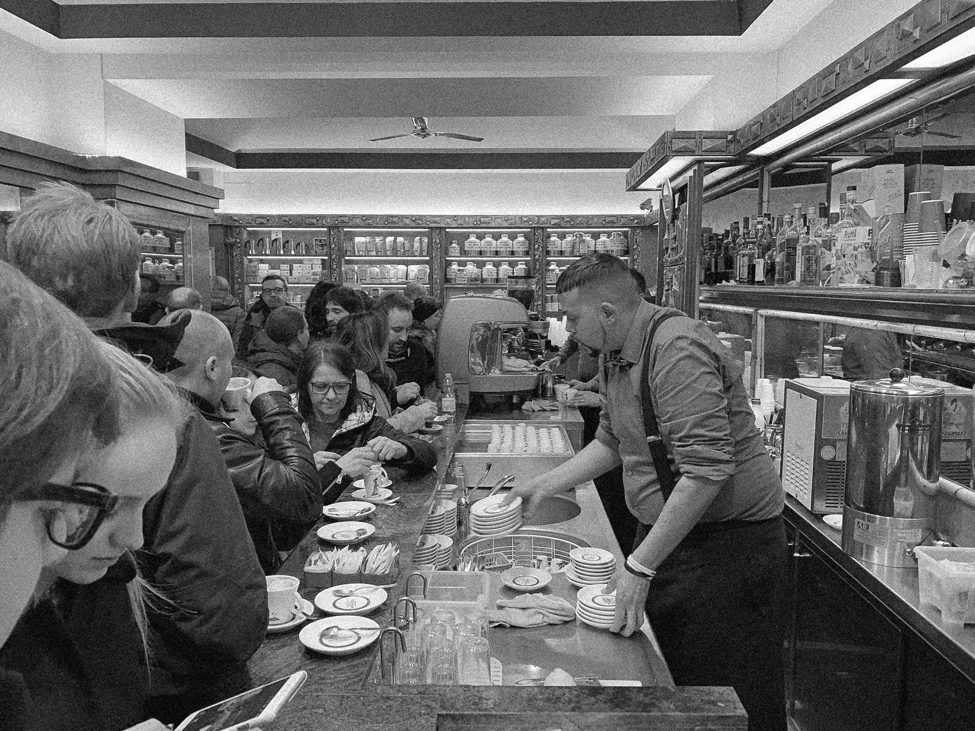 - Trinkt jeden Tag mindestens einen Espresso und Rotwein ab 11.30 Uhr in eurer Stammbar. (Obacht Verwechslungsgefahr, was in Deutschland Espresso ist, ist in Rom ein Caffé)
