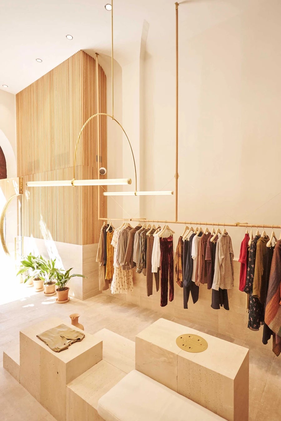 Der Laden und Showroom von Masscob gehört auf jeden Fall zu den architektonischen Highlights von Palma de Mallorca und sollte unbedingt von euch besucht werden. Er liegt am Plaza del Mercat und gleicht einer travertinen Kirche. Das Interieur, designt vom Architekten Laurent Deroo, lässt mit Beige und Messing die Kleidung im Vordergrund stehen – und ist trotzdem Kunst für sich.