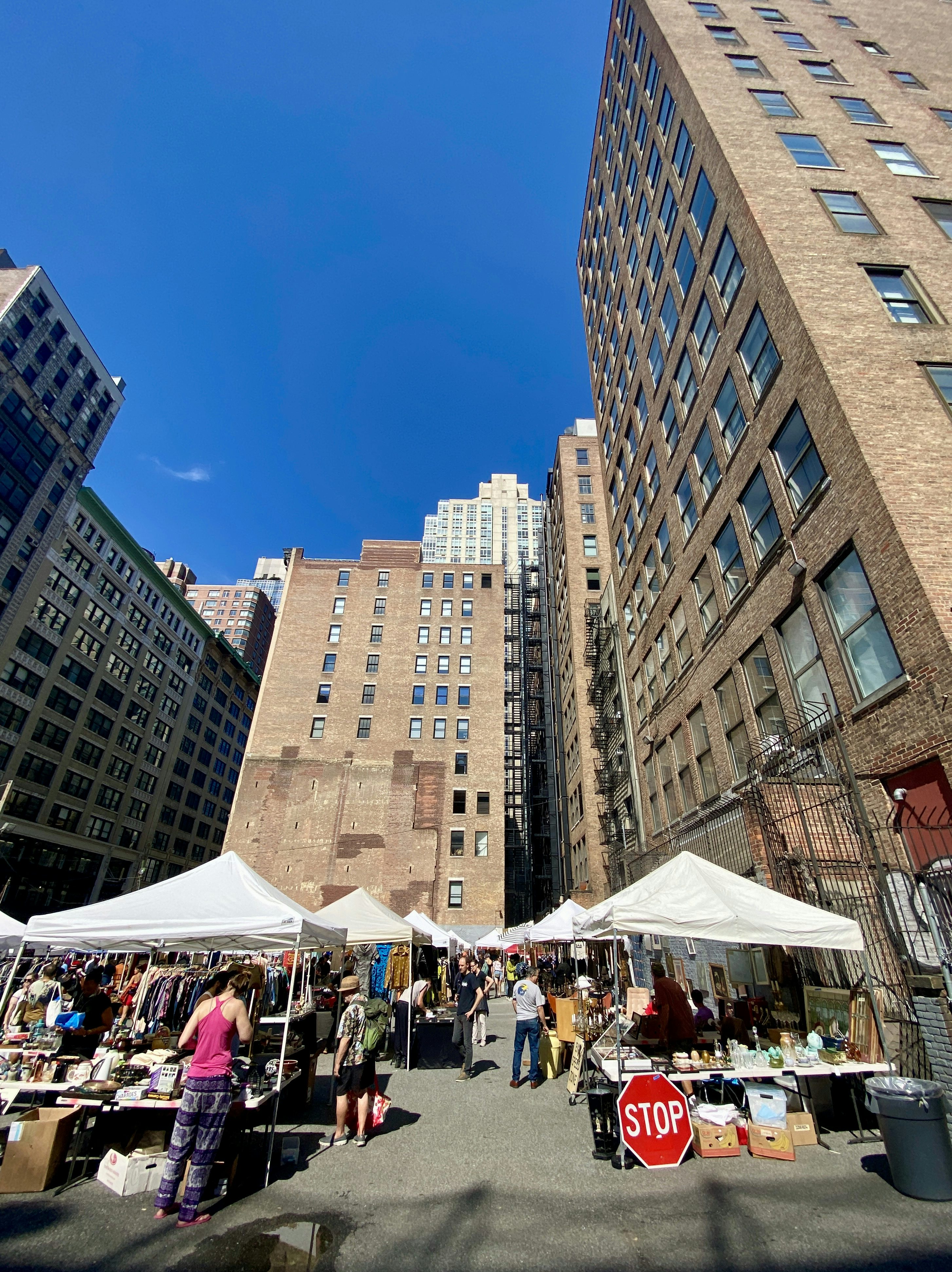 Einer der bekannteren Flohmärkte Manhattans und dennoch angenehm, sowohl preislich als auch menschlich. Hier kann man noch mit original New Yorker*innen über die Preise verhandeln und skurrile Schätze aus ominösen Kisten zutage fördern. Die Lage inmitten einer Häuserschlucht ist außerdem cool. Der Flohmarkt findet jeden Samstag und Sonntag statt.
