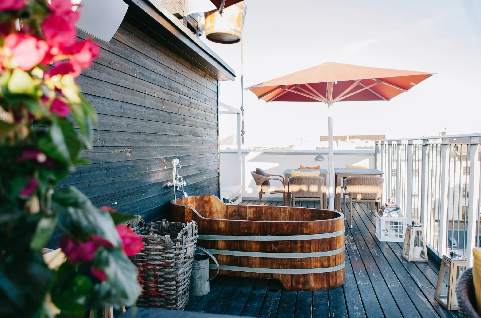 Das Babette Guldsmeden liegt im Vergleich zum Bryggen deutlich zentraler, nämlich nur wenige Gehminuten vom Schloss und der kleinen Meerjungfrau entfernt. Dafür ist es natürlich etwas kleiner als das Bryggen, hat aber dennoch ein Spa, das sich auf der Dachterrasse befindet. Dort könnt ihr Dampfbäder nehmen oder euch mit einem kalten Eimer Wasser abduschen, im Innenhof lässt sich gemütlich Kaffee trinken und frühstücken.