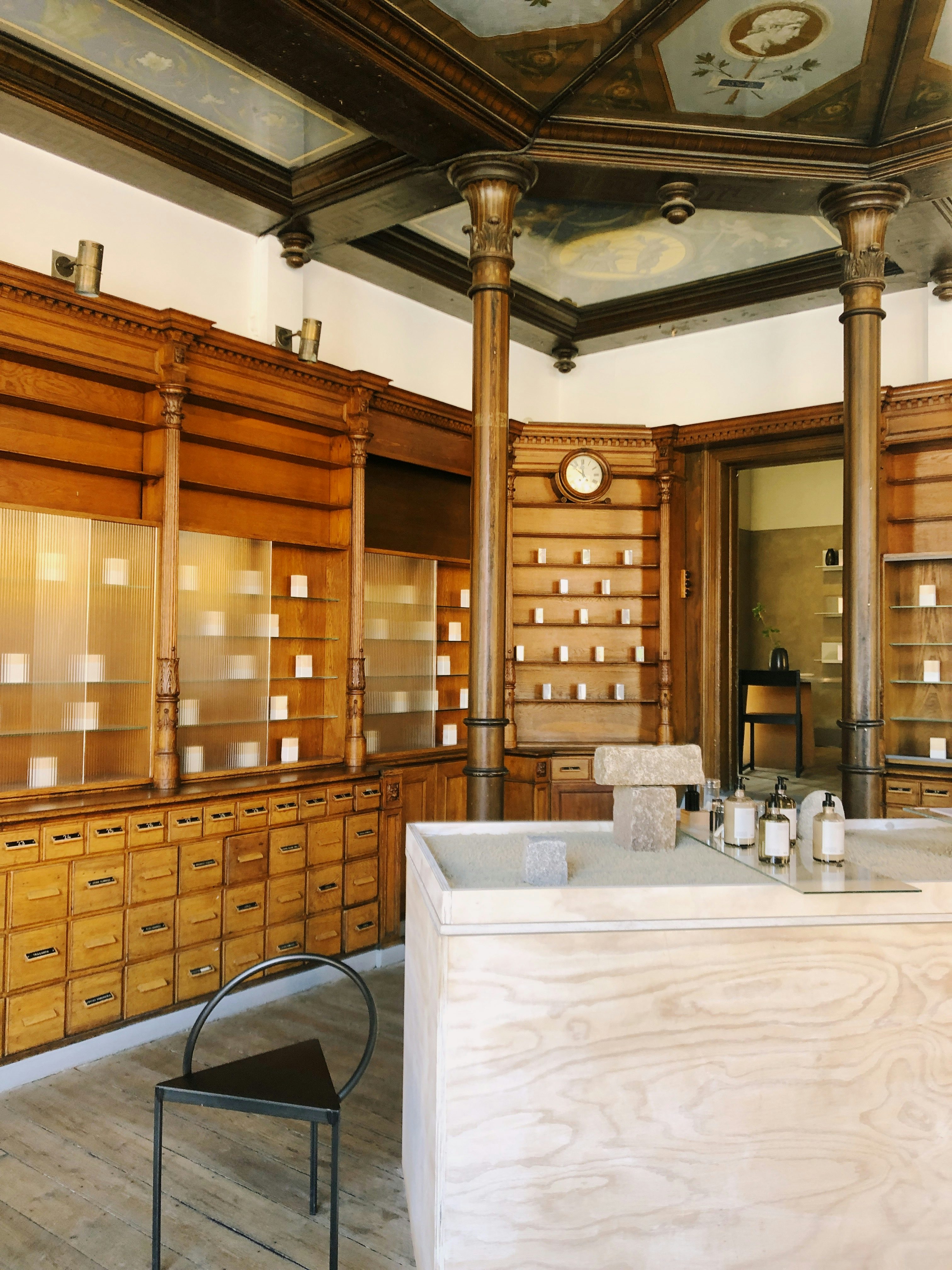 Zunächst einmal war ich etwas hilflos, als ich im wunderschönen Store in einer alten Apotheke in Kopenhagen stand. Der Showroom von Frama, die nicht nur Möbel, Beleuchtung, Apothekenware, Bücher, Kleidung und Küchen verkauft, sondern auch komplettes Interior Management anbietet, ist mehr Museum als Verkaufsfläche. Wer auf minimalistische Designs steht, der ist hier richtig und kann sich in Ruhe inspirieren lassen.