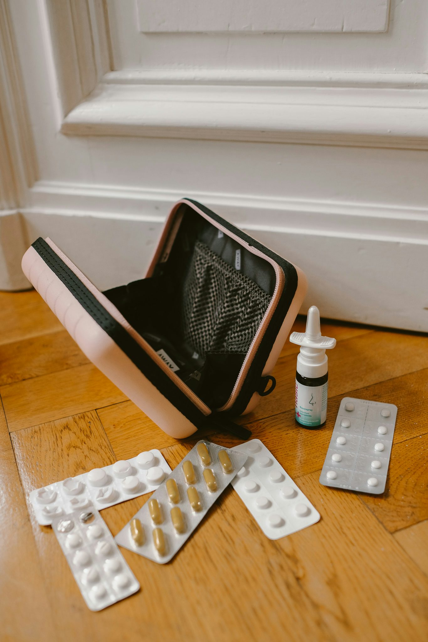 Für Medikamente – und ja, ich habe immer viel zu viel dabei, aber ich gehe gerne auf Nummer Sicher, nutze ich das kleine Hard Shell Case von Away, was ein Geschenk war. Es ist perfekt für Medikamente gemacht, weil es robust ist und Tabletten sowie kleine Glasflaschen schützt, als auch wasserabweisend ist. Hohe Luftfeuchtigkeit in heißen Ländern lässt manche Tabletten nämlich einfach verschwinden, deswegen auch bitte nie im Bad, wo ständig Wasserdampf ist, aufbewahren.