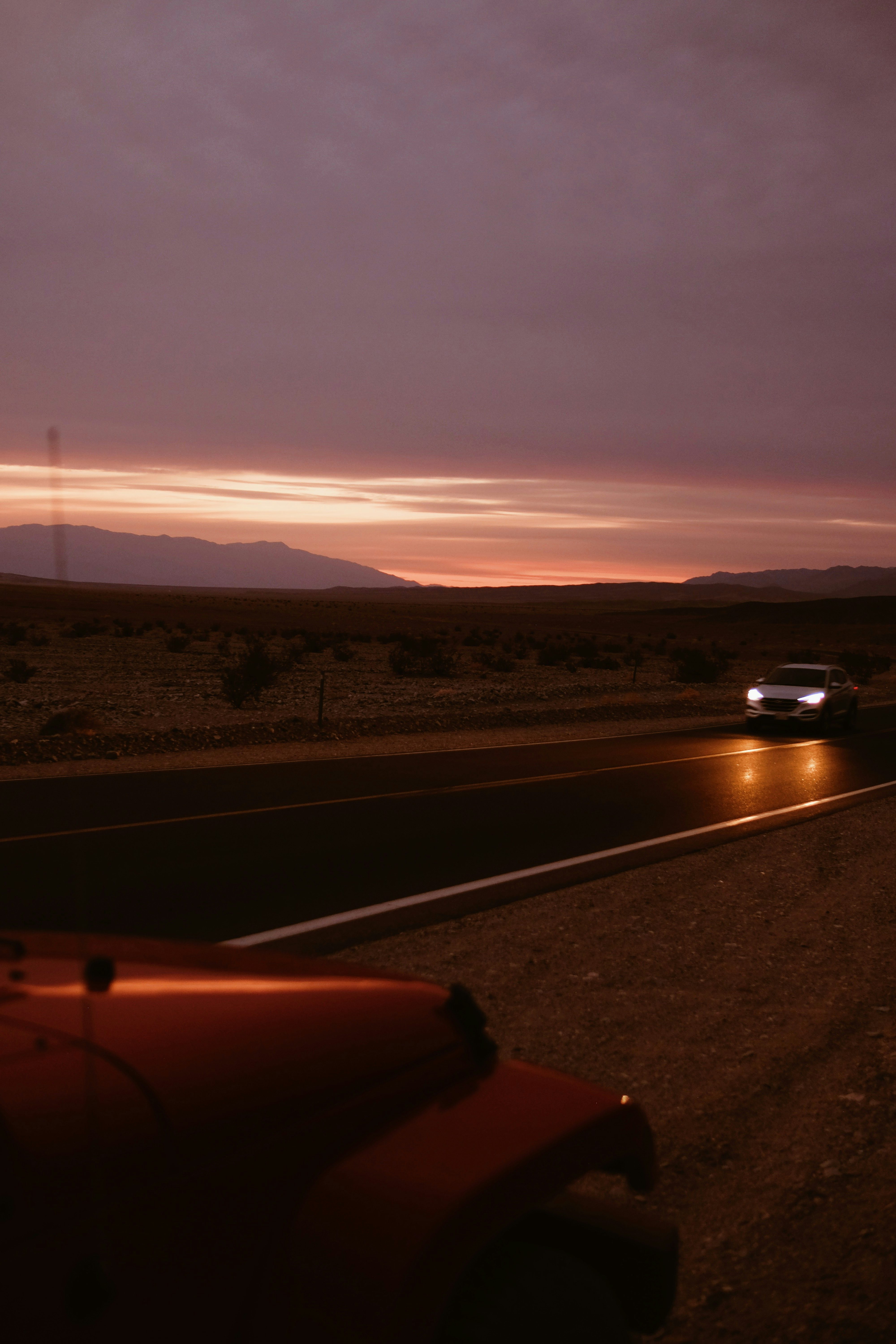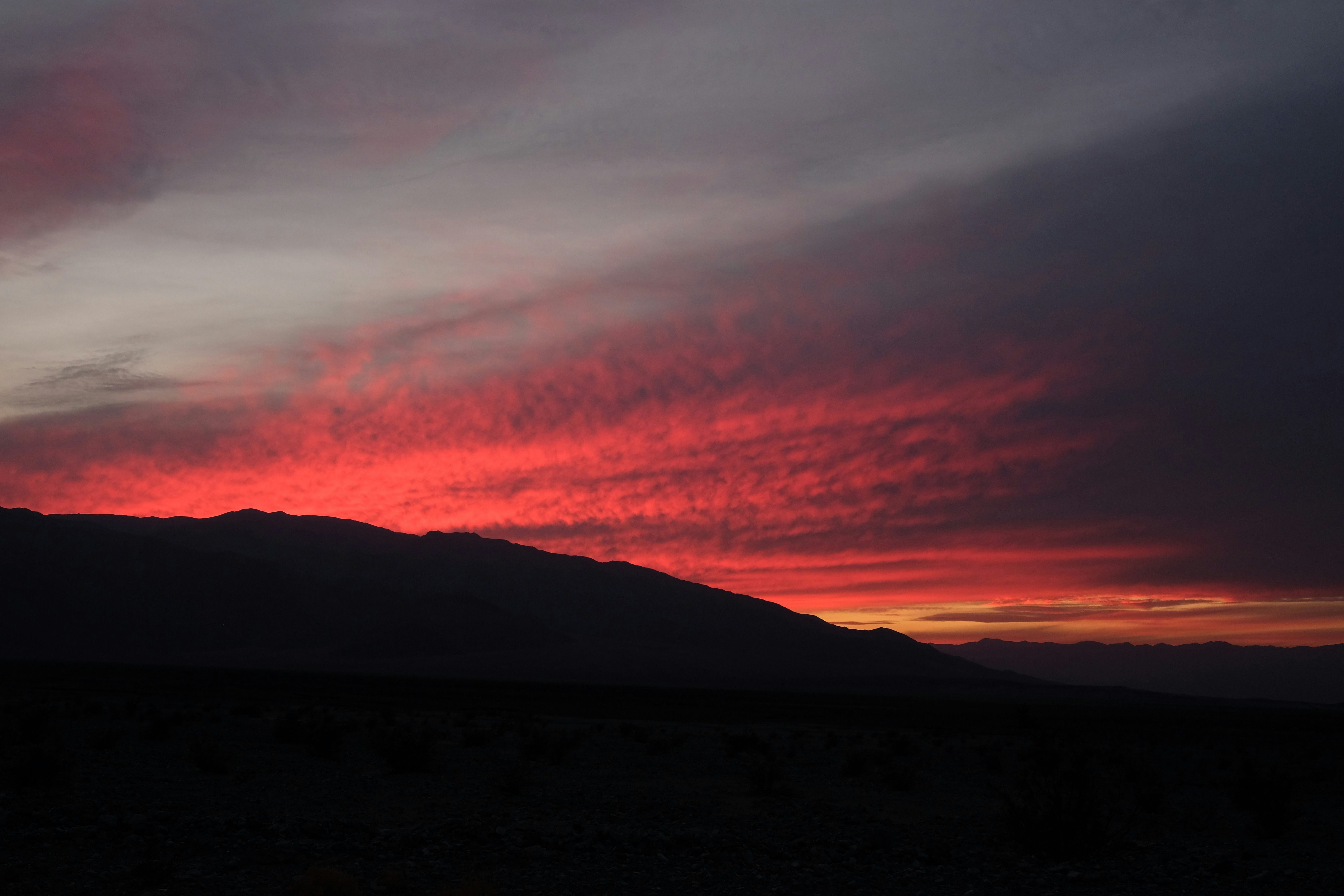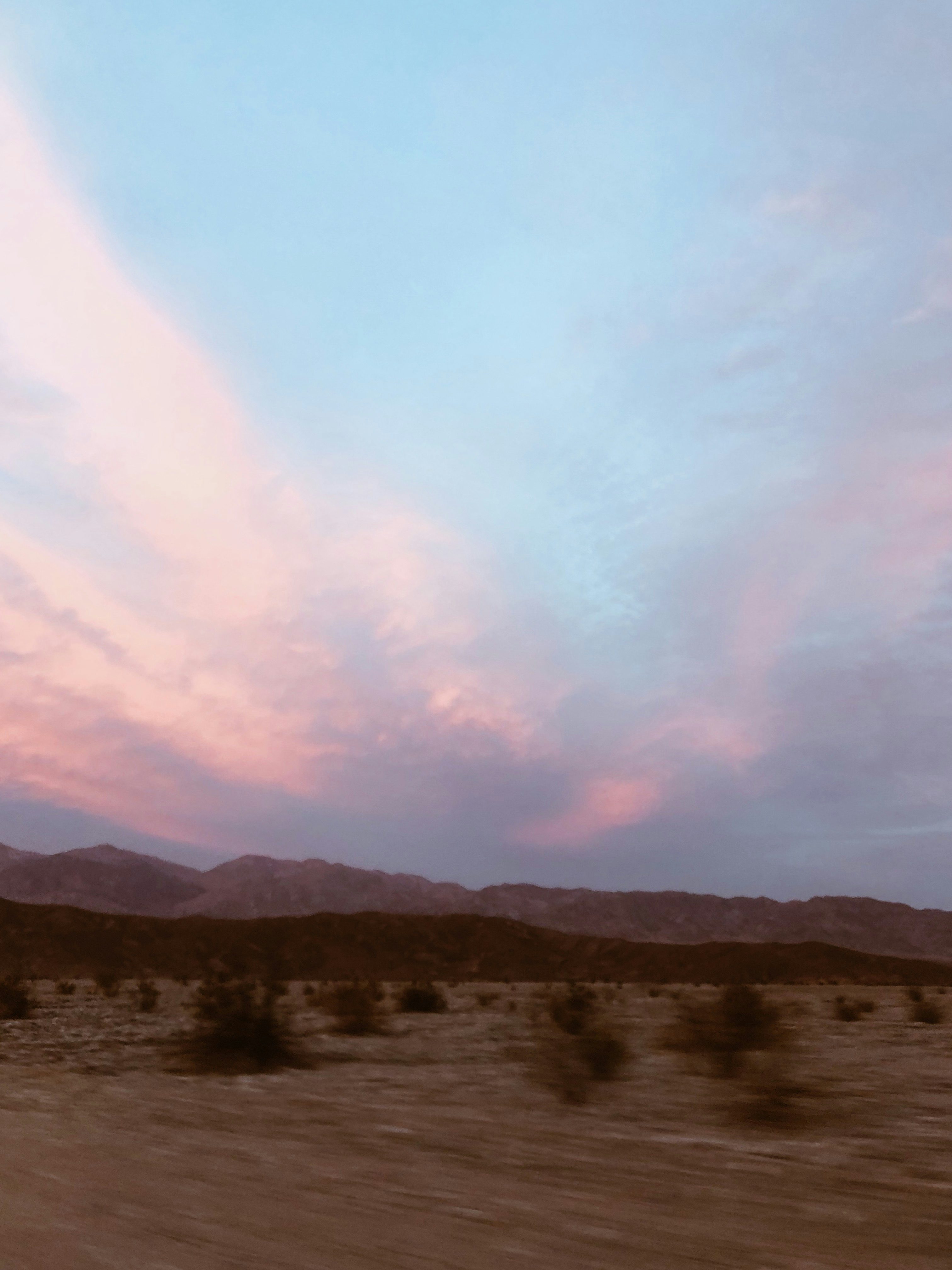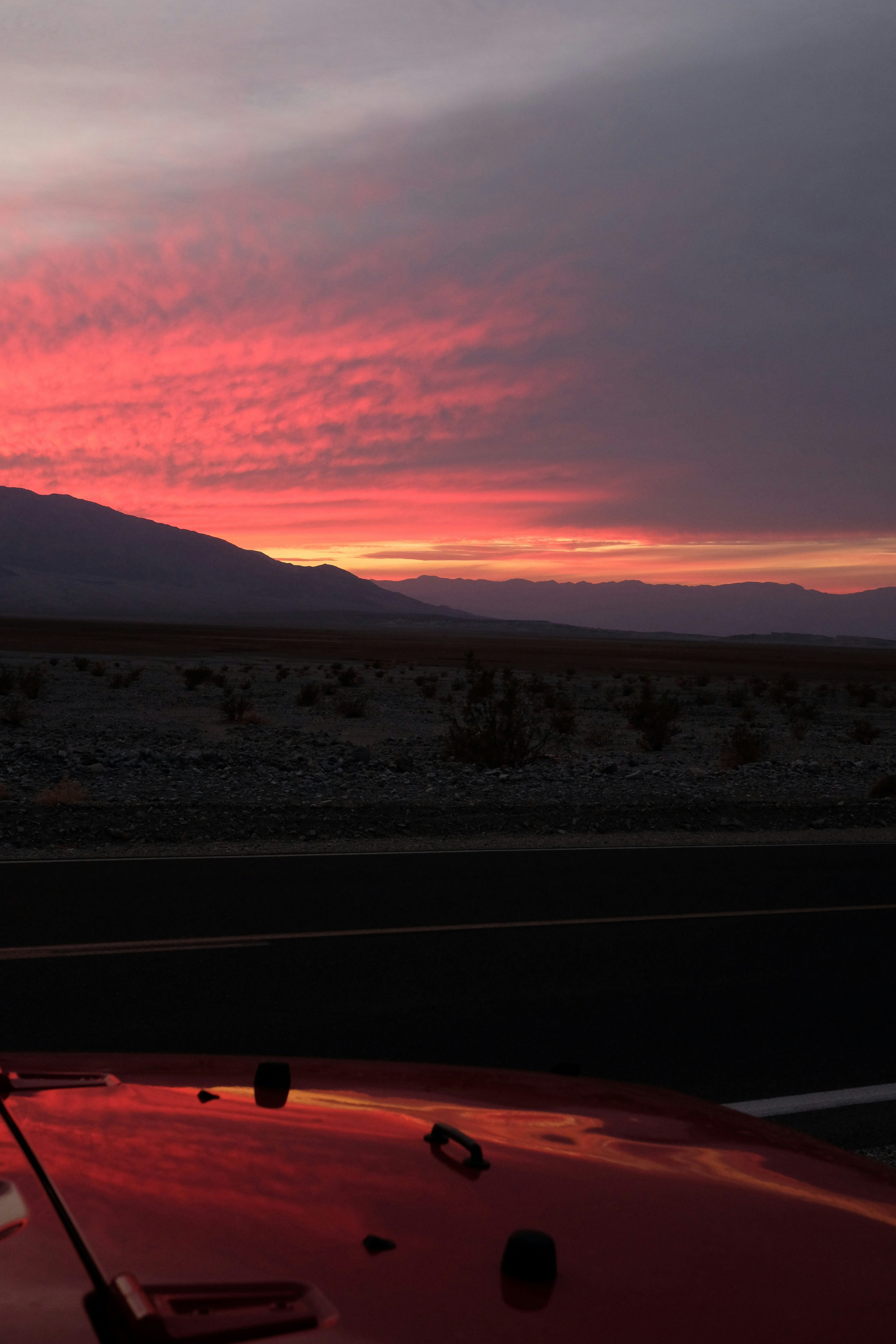Danach erwartete uns der zweite schönste Sonnenuntergang auf unserer ganzen Reise. Der zartrosa Himmel brachte uns dazu, schnell am Straßenrand zu parken und dann wird aus Rosa ganz allmählich Koralle, Knallpink, Lila und Schwarz.
