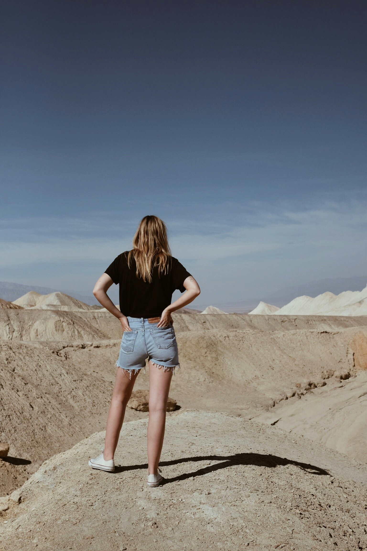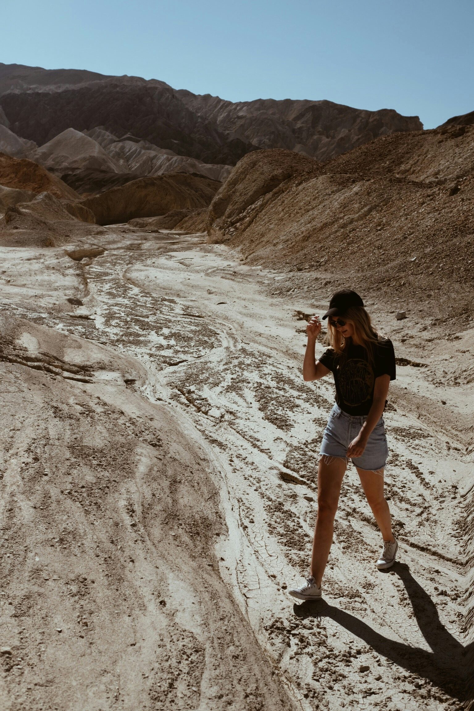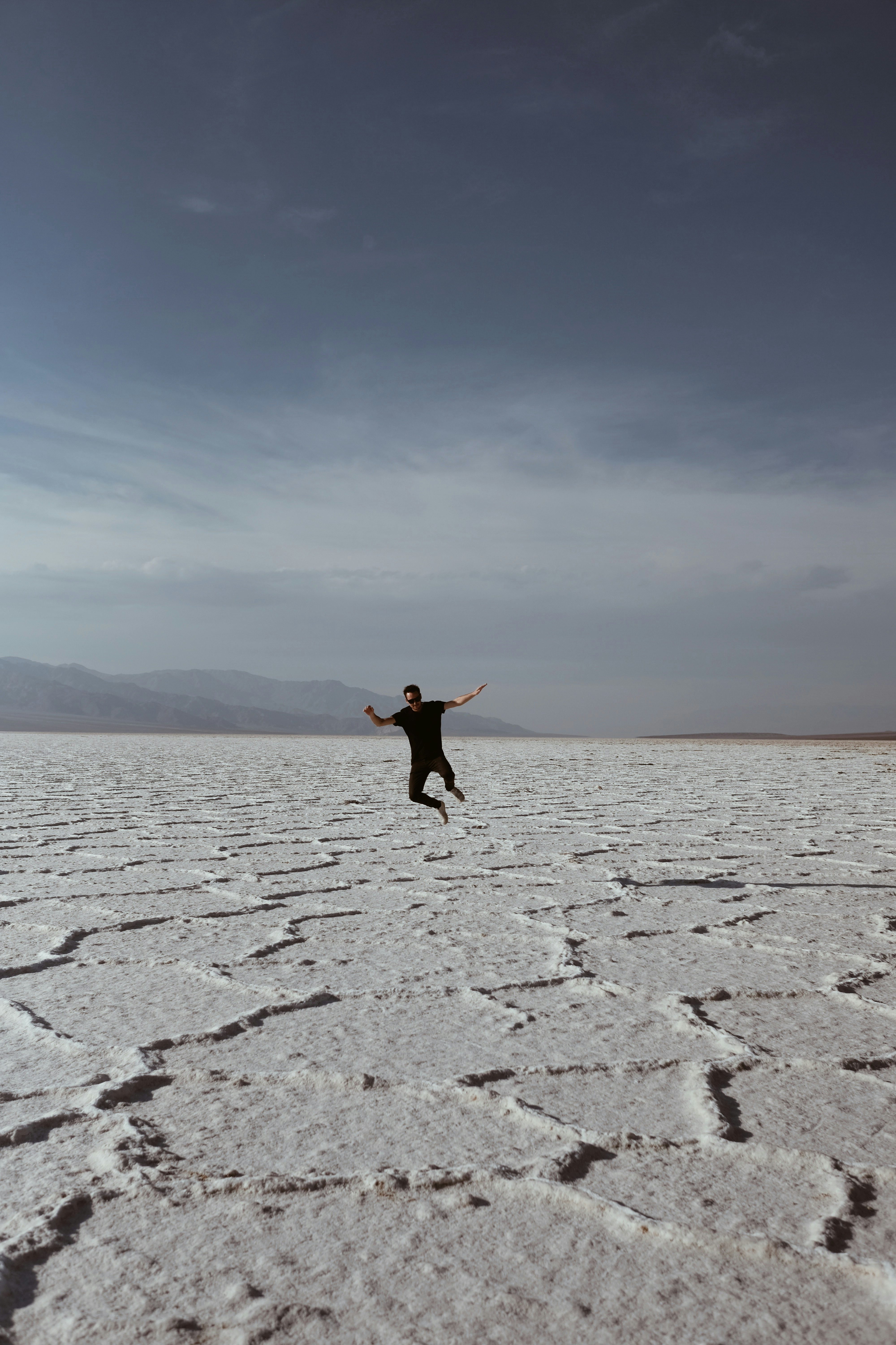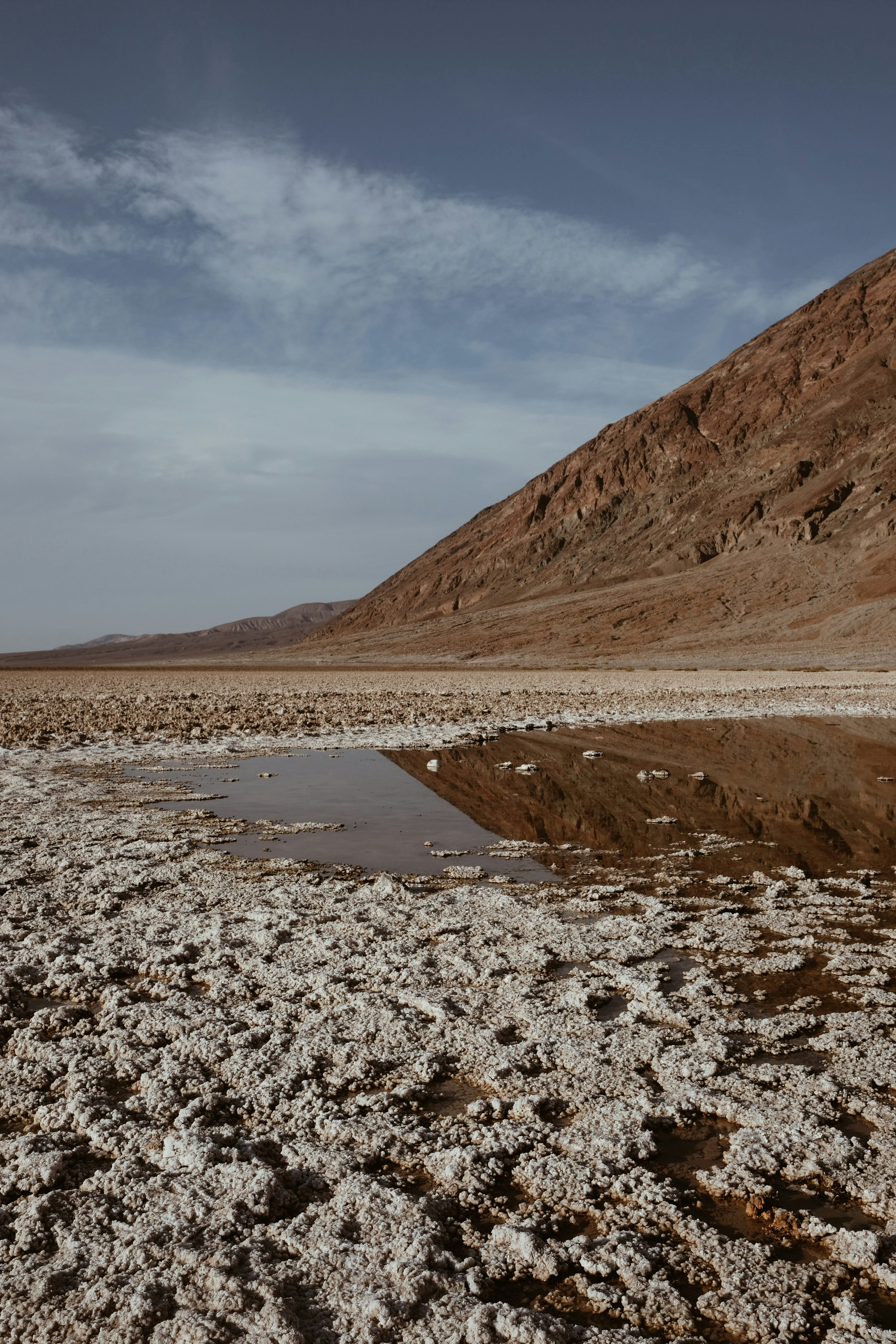 Im Hochsommer das Tal des Todes zu besichtigen, ist deswegen vielleicht nicht die beste Idee, wir hatten mit Mitte 30 Grad aber einen angenehm „kühlen“ Tag erwischt. Auch wenn mir das zwischendurch, als der Schweiß in meinen Augen brannte und die Stirn herunterlief, nicht so vorkam. Besonders heiß war es im Badwater Basin, dem tiefsten Punkt der USA mit einer Höhe von 85,5 Metern unter dem Meeresspiegel. Das resultiert in einer Salzwüste mit wunderschönen sechseckigen Strukturen auf dem Boden, vor 3000 Jahren ein tiefer See. Ein unwirklicher Ort, weil man sich fühlt wie auf einer Schneepiste, gleichzeitig aber in Shorts und T-Shirt in unfassbarer Hitze und seinem eigenen Schweiß steht. Solltet ihr nach diesem Reisebericht einmal dort sein, dann packt auf jeden Fall genug Wasser, eine Kopfbedeckung, Sonnenbrille und dünne, luftige Kleidung ein. Gerade nach einem Hut habe ich mich auf dem rund 20 Minuten langen Spaziergang in die Wüste sehr gesehnt, ein halber Wasserkanister war nach dem Ausflug leer, die T-Shirts mussten danach aufgrund von Nässe gewechselt werden.
