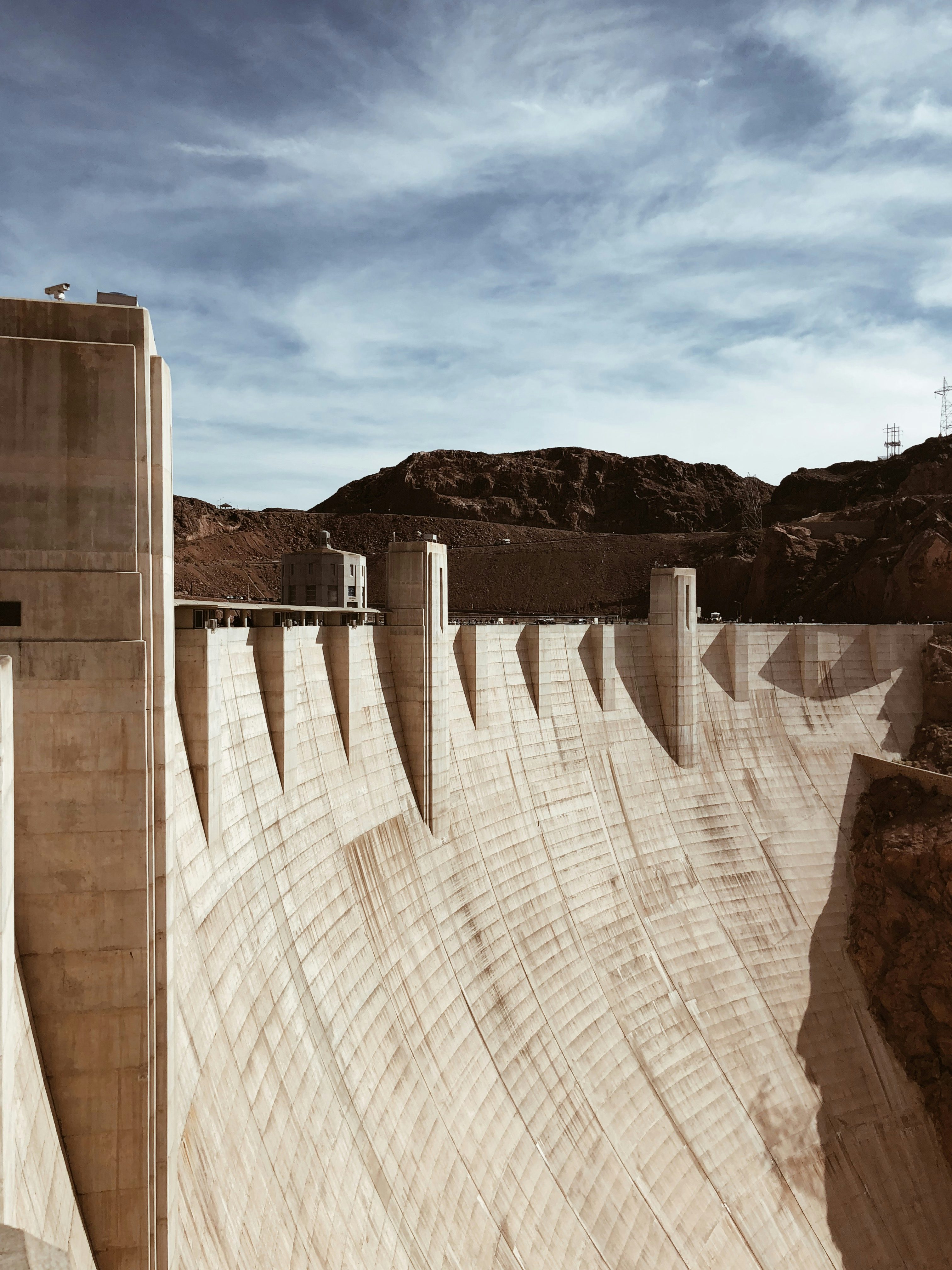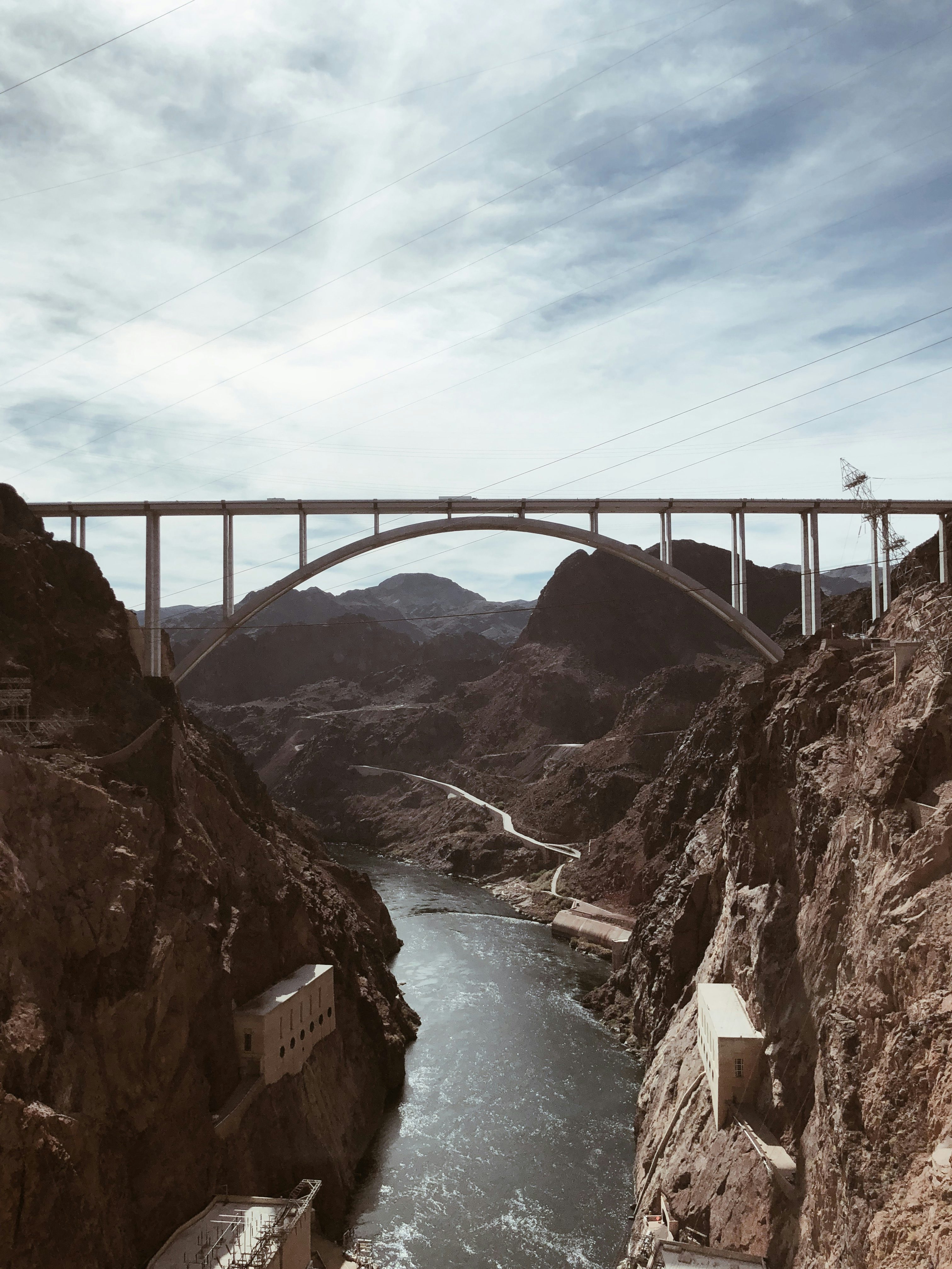 Gar nicht weit entfernt ist ein weiteres berühmtes Wahrzeichen der USA: der Hoover Dam. Erbaut zwischen 1931 und 1935 dient der Staudamm vor allem zur kontrollierten Wasserabgabe an die Staaten Arizona, Nevada und Kalifornien und hält so Hochwasser und Dürreperioden unter Kontrolle. Der Nachteil an der ganzen Sache: Hochwasser haben auch in der Natur einen Sinn und Zweck, nämlich das Aufräumen des Flussbetts. Durch ihr Fehlen ändert sich das Milieu des Colorado Rivers, Arten sterben aus. Künstliche Hochwasser müssen erzeugt werden. Ein weiterer Zweck des Staudamms: Energiegewinnung. Infos hin oder her, den Hoover Dam kennt zumindest jeder aus „Transformers“ und „James Bond“. Mit Höhenangst ist so ein Staudamm dann auch gleich doppelt so aufregend: Es beeindruckt mich immer wieder, was Menschenhände so erbauen können und wie sie damit Einfluss auf die Natur in der Umgebung nehmen und diese komplett verändern. Gleichzeitig konnte ich das Bauwerk aber nicht so richtig genießen, dafür ist es dann doch viel zu schmal und zu hoch, die Angst begleitete mich auf jedem Schritt. Für kurze Ablenkung sorgten jedoch die architektonischen Highlights im Art-déco-Stil. Bis auf die Mid-Century-Bauten in Palm Springs hatten wir auf der Reise ja viel mehr Natur als Design im Fokus. Fahrstuhltüren in Gold, verschnörkelte Schriften im Stil der 20er-Jahre und für meinen Freund ein weiteres Highlight: ein frei stehendes Pissoir. Amerika überrascht einen doch immer wieder! Für genauso viel Begeisterung auf der männlichen Seite sorgte zudem ein weiteres Gebäude: das Parkhaus. In den Fels geschlagen und aus rot eingefärbten Beton gegossen, verbrachten wir dort mindestens genauso viel Zeit wie auf dem Staudamm. Gut, jedem das Seine, ich renne in jeden Giftshop in der Hoffnung auf ein stilvolles Mitbringsel – sehr erfolgreich bin ich also nicht, wie ihr euch vorstellen könnt – und so muss man den Architekt halt manchmal Architekt sein lassen, auch wenn das bedeutet, dass man eine halbe Stunde in einem Parkhaus rumsteht.