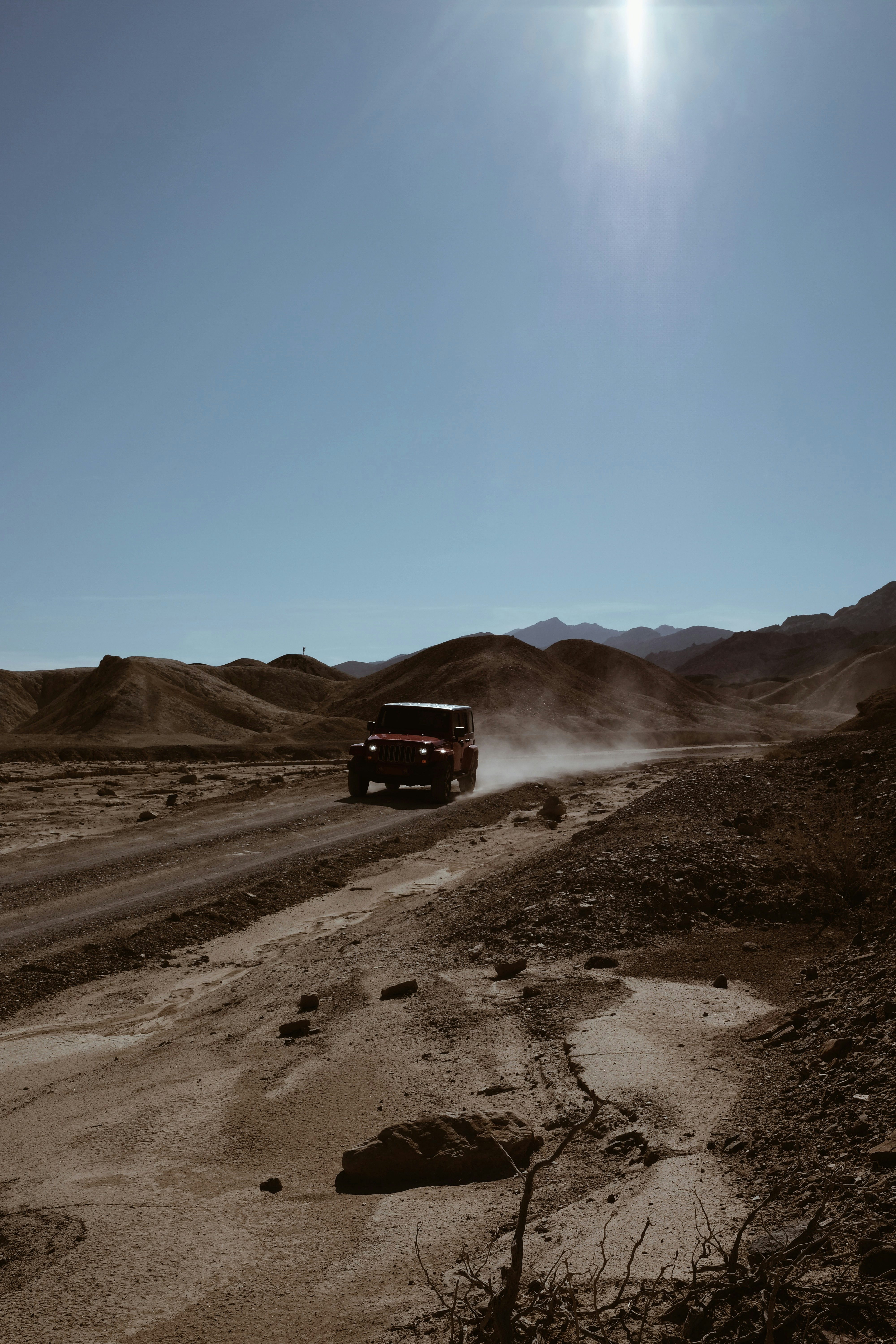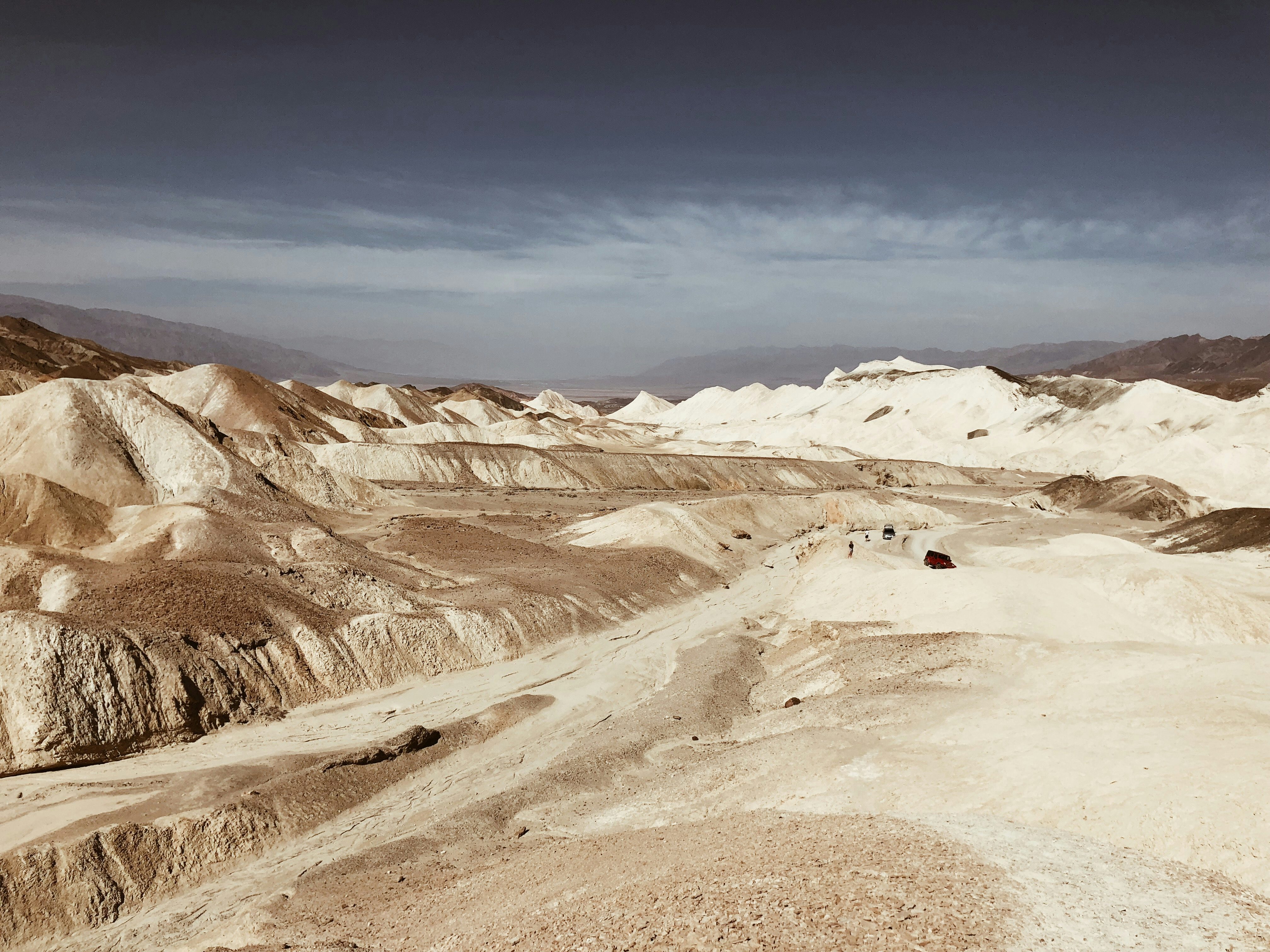 Am nächsten Morgen brachen wir dann ins Death Valley auf, dem trockensten Nationalpark der gesamten USA in der Mojave Wüste. Am Morgen hatte ich mir noch nichts bei dem Namen des Tals gedacht, aber schon bei Einfahrt in den Park wurde dann klar: das Tal des Todes wird seinem Namen gerecht. Nichts als Wüste, unfassbare Hitze, kein Schatten, keine Pflanzen. Danke, Fortschritt, für das Auto, mit dem Pferd hätte ich hier wirklich nicht durchreiten wollen – nur mit dem größten Sombrero der Welt und einem Wassertank auf dem Karren. Obwohl das Death Valley nur wenige hundert Kilometer vom Pazifischen Ozean entfernt liegt, ist es eine der trockensten Gegenden auf der gesamten Erde – und einer der heißesten Orte, es werden gut und gerne mal 56 Grad.