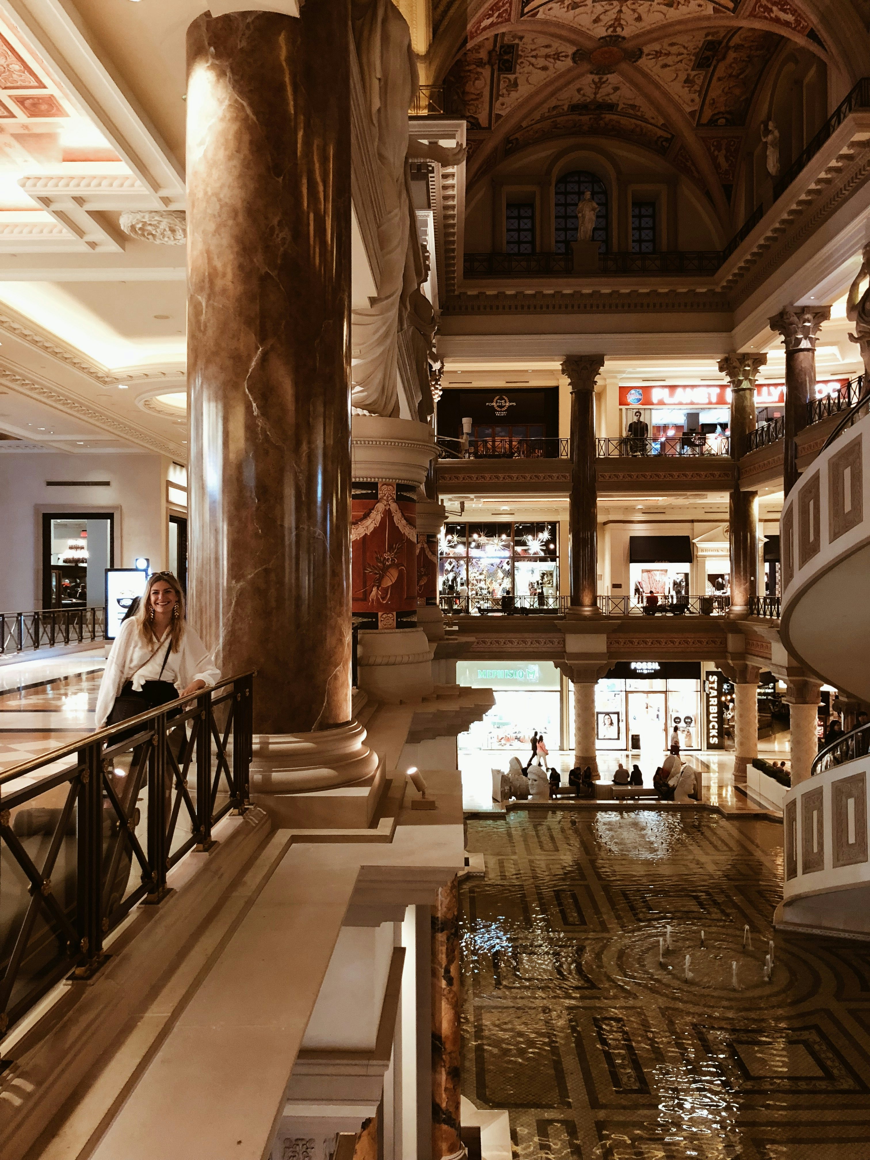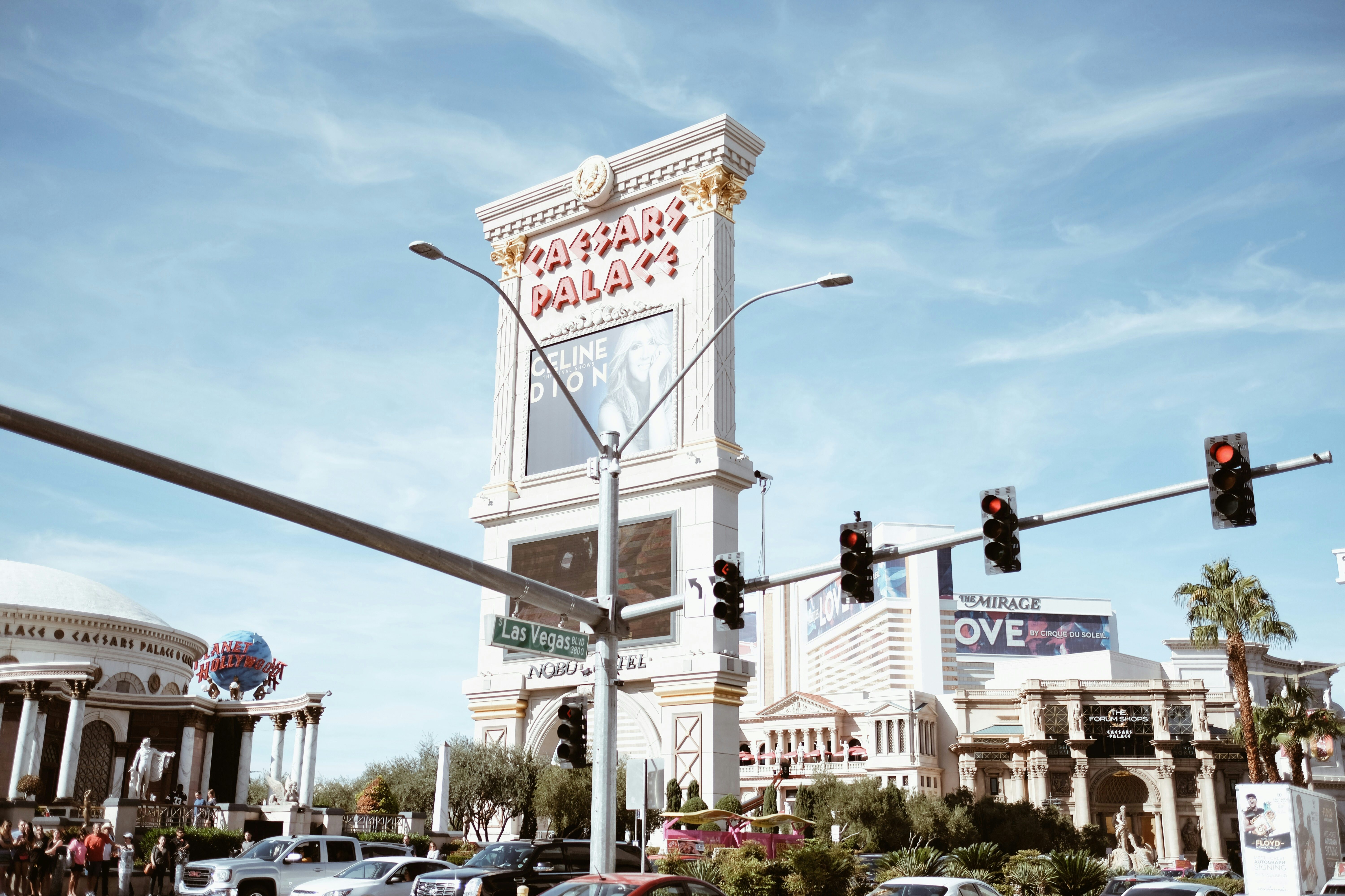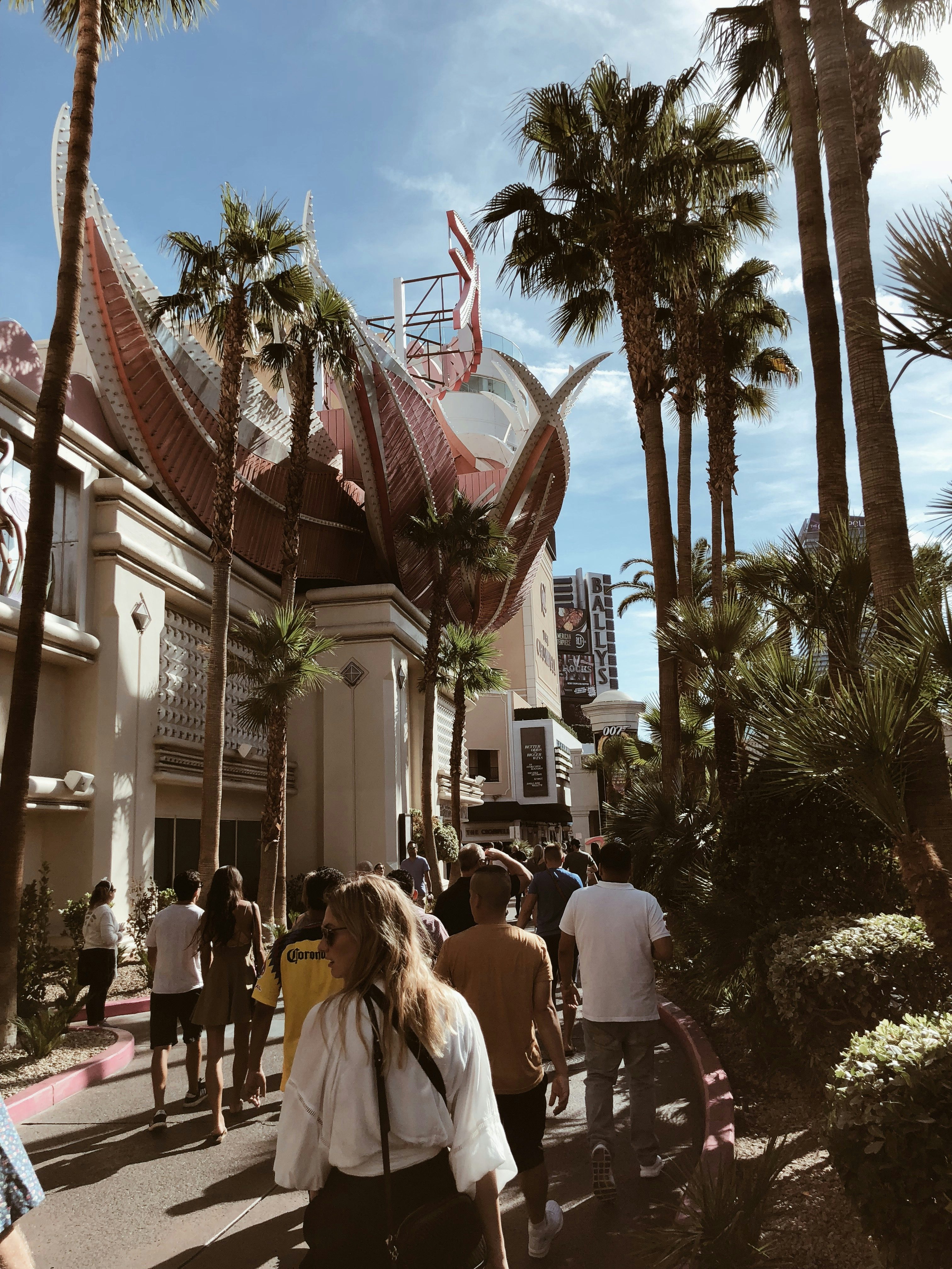 Kein Wunder, denn die großen Kasino Hotels wie das Mirage, Caesars Palace, Hardrock Hotel, Treasure Island, Wynn und wie sie noch so alle heißen, sind im Grunde gar keine Hotels, sondern Städte. Von unserem Hotelzimmer bis zu unserem Auto im Parkhaus mussten wir locker 20 Minuten laufen – und das ist nicht die weiteste Strecke, die man innerhalb des gleichen Hotels zurücklegen kann. Das Ziel dieser riesigen Räume: Gäste sollen das Kasino auf keinen Fall verlassen. Und man hält sie mit eigenen Shoppingmalls, Food Courts, mehreren Kasinos und Automatenbereichen, Pools und Sportbars quasi gefangen. Es gibt tatsächlich nur sehr wenige Ausgänge und die sind auch noch schlecht ausgeschildert, die Gänge so verwirrend gestaltet, dass man sich gut und gerne mal verläuft und mit aufgemaltem Himmel an der Decke wird einem auch noch das Draußen-Gefühl künstlich vorgespielt.
