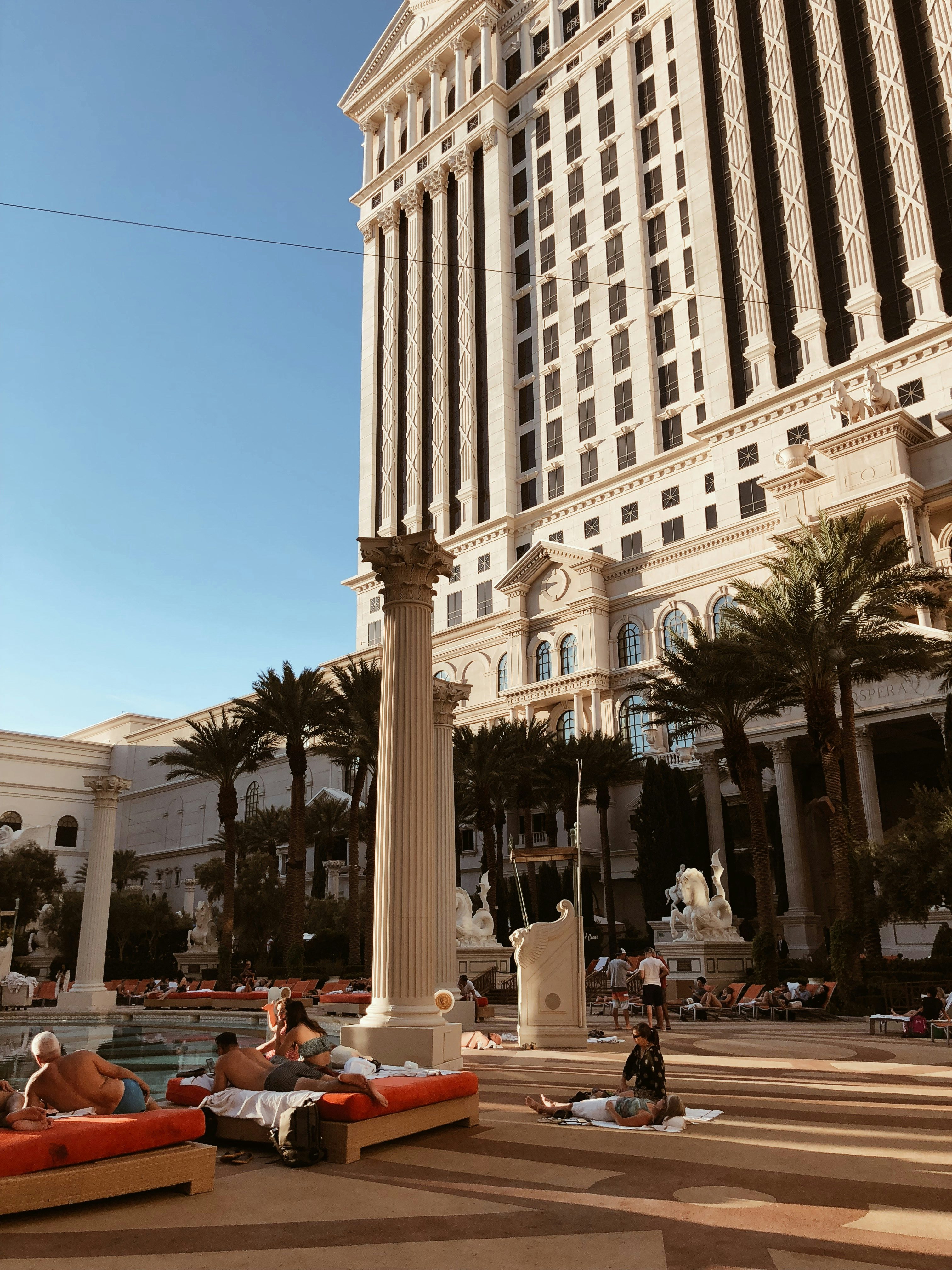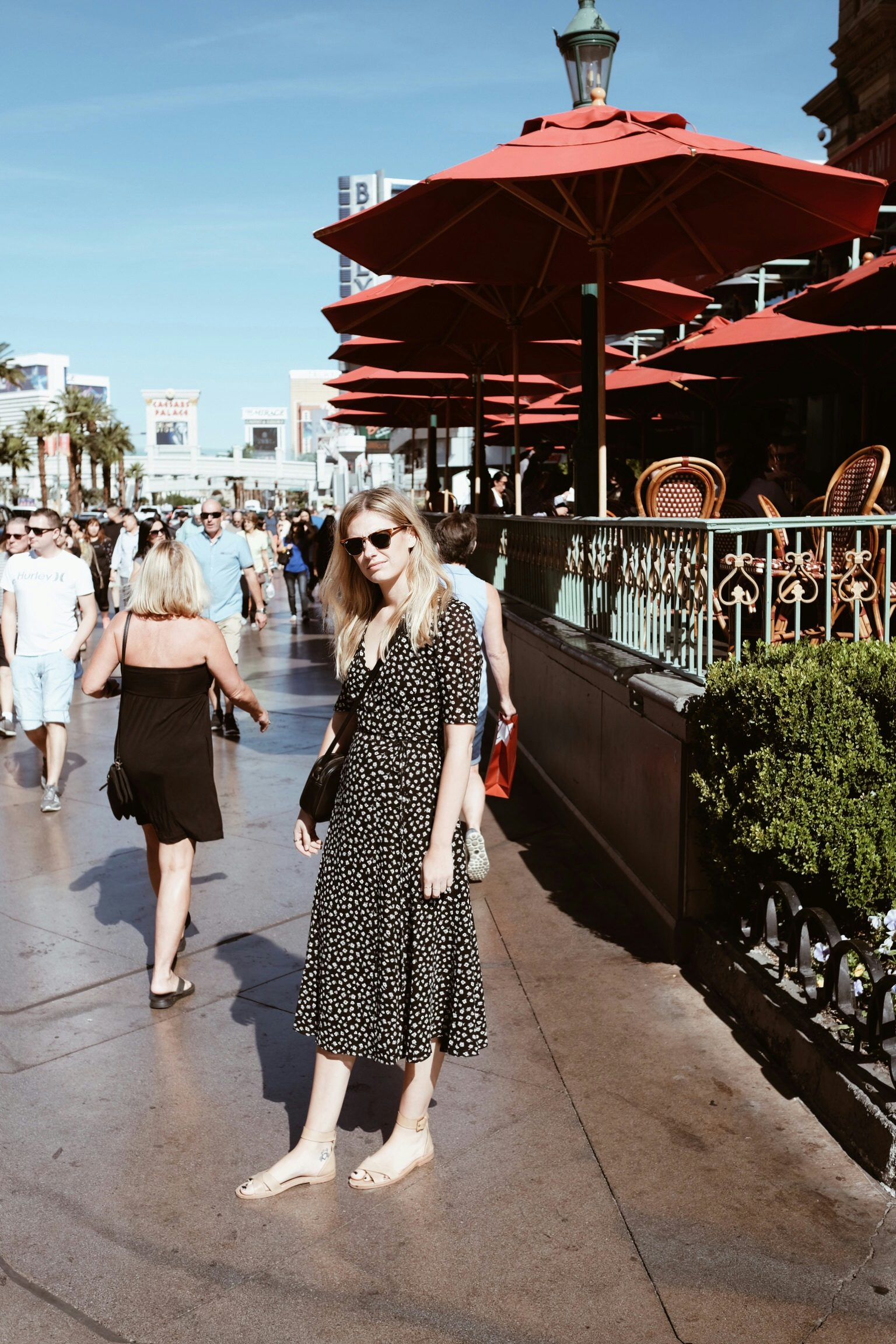 Tatsächlich ist die Stadt aber viel kleiner, als man denkt. Zumindest das touristische Zentrum, in dem sich gefühlt das ganze Leben in Las Vegas abspielt, der Strip, besteht aus einer einzigen Straße. Verlässt man diese und geht nur eine Querstraße weiter, dann steht man irgendwo im Nirgendwo. Keine leuchtenden Schilder mehr, keine Kasinos, keine angetrunkenen Touristen. Nun könnte man es unserem Nomaden-Leben der letzten Wochen zuschreiben, dass wir von Minute Eins an von der Stadt absolut überfordert waren, aber alleine die Suche nach dem Parkhaus vom Caesars Palace, unserem Hotel, hätte mich nicht mehr stressen können. Tausende Wege, überall Autos, alles blinkt, ist eng und verschachtelt und irgendwie doch extrem weitläufig.