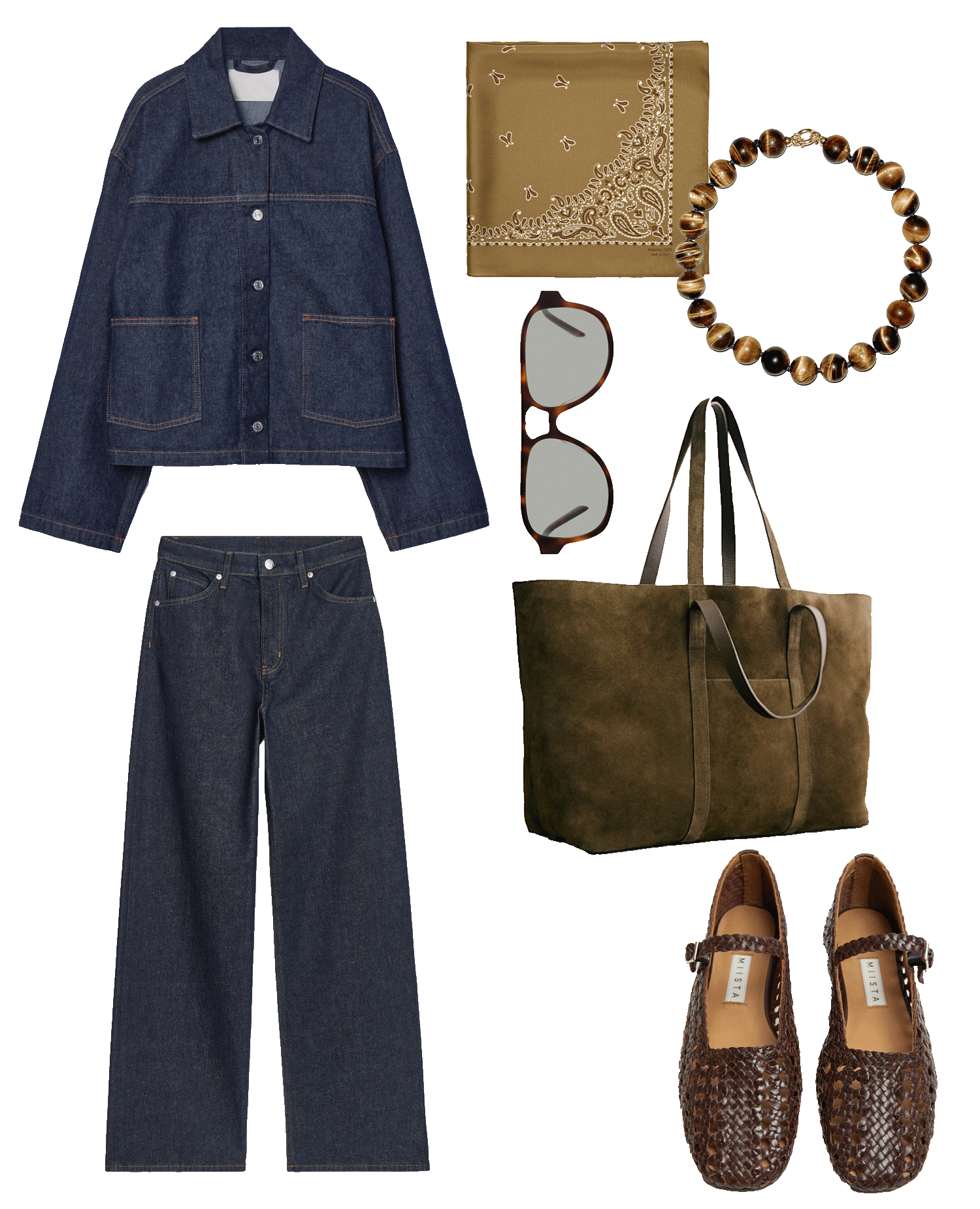 Jeans Jacke / Jeans / Tasche / Bandana / Kette / Sonnenbrille / Schuhe