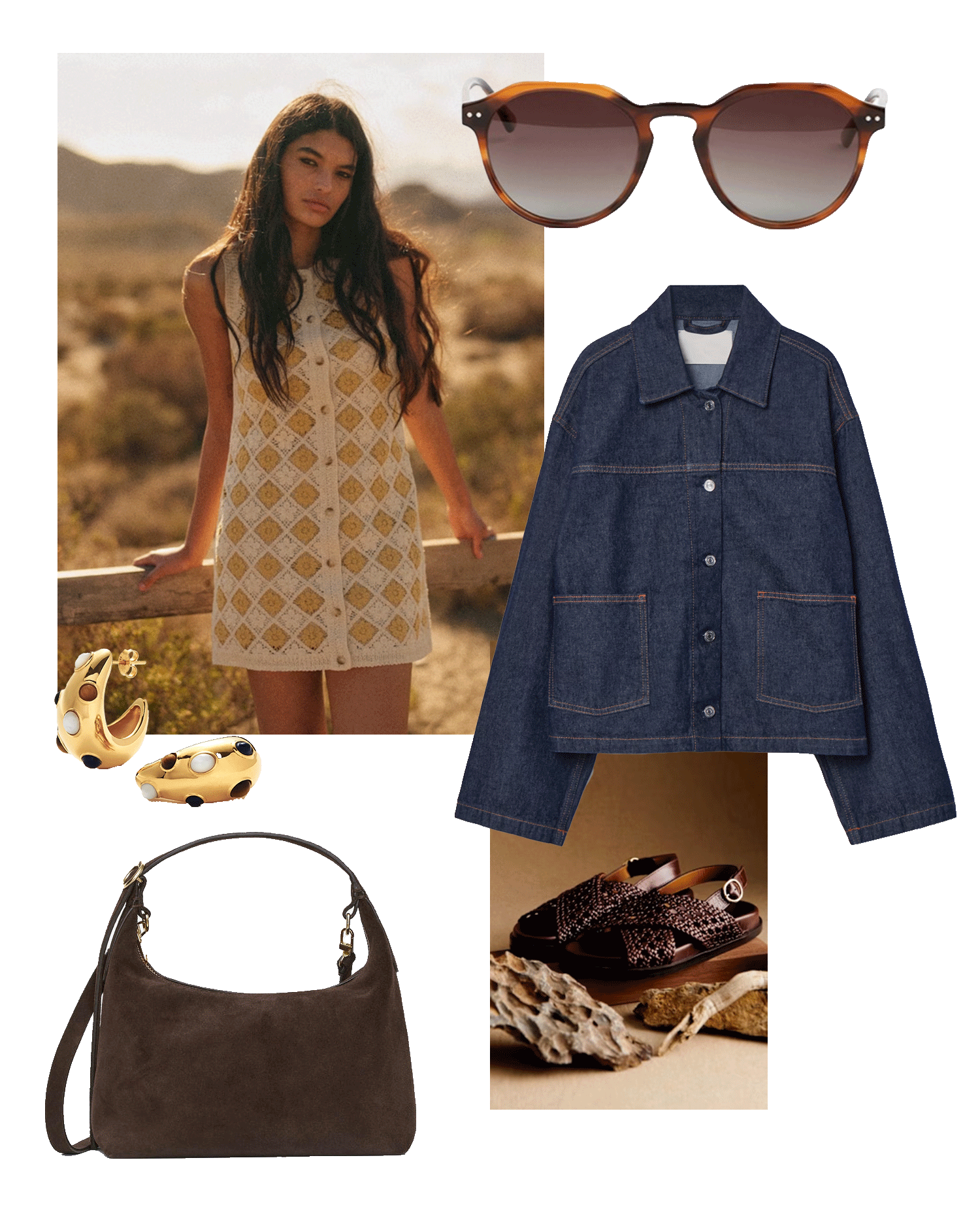 Kleid / Jacke / Schuhe / Sonnenbrille / Ohrringe / Tasche